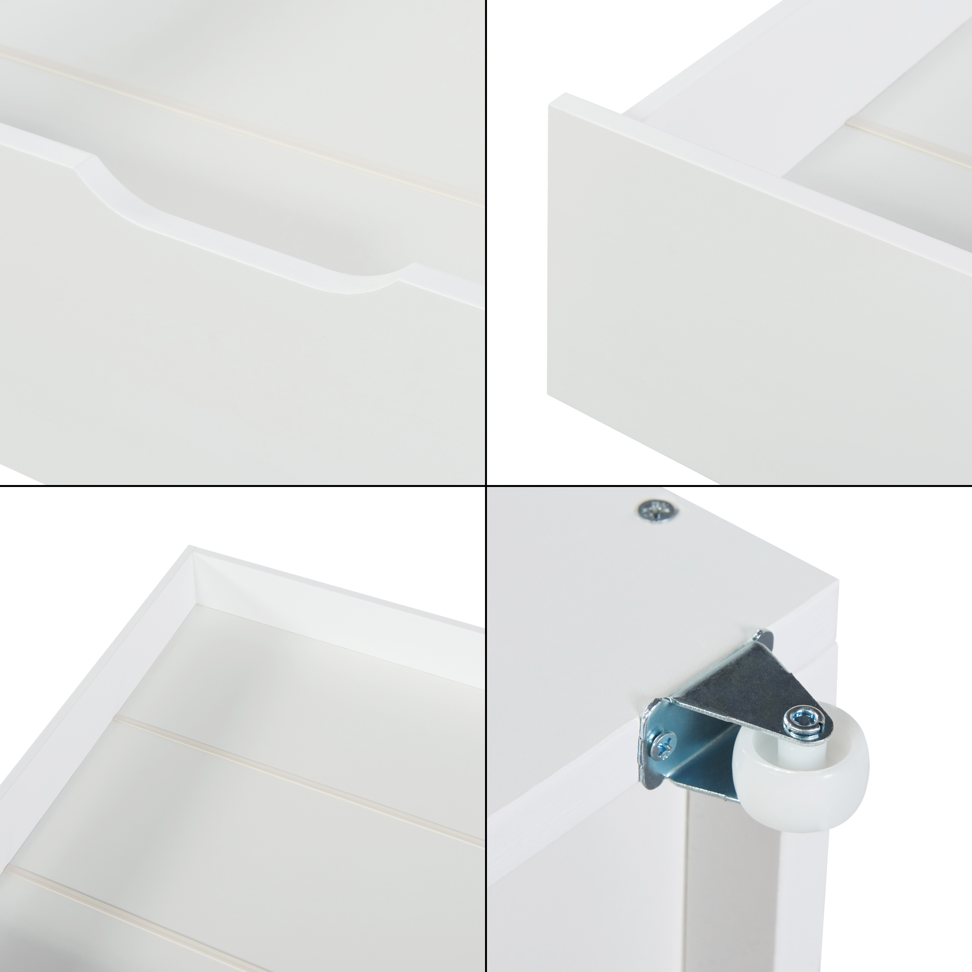 Jede Schublade ist mit vier leichtgängigen Rollen ausgestattet, die ein müheloses Herausziehen und Zurückschieben ermöglichen. Dies gewährleistet eine benutzerfreundliche Handhabung, selbst wenn die Schubladen voll beladen sind.