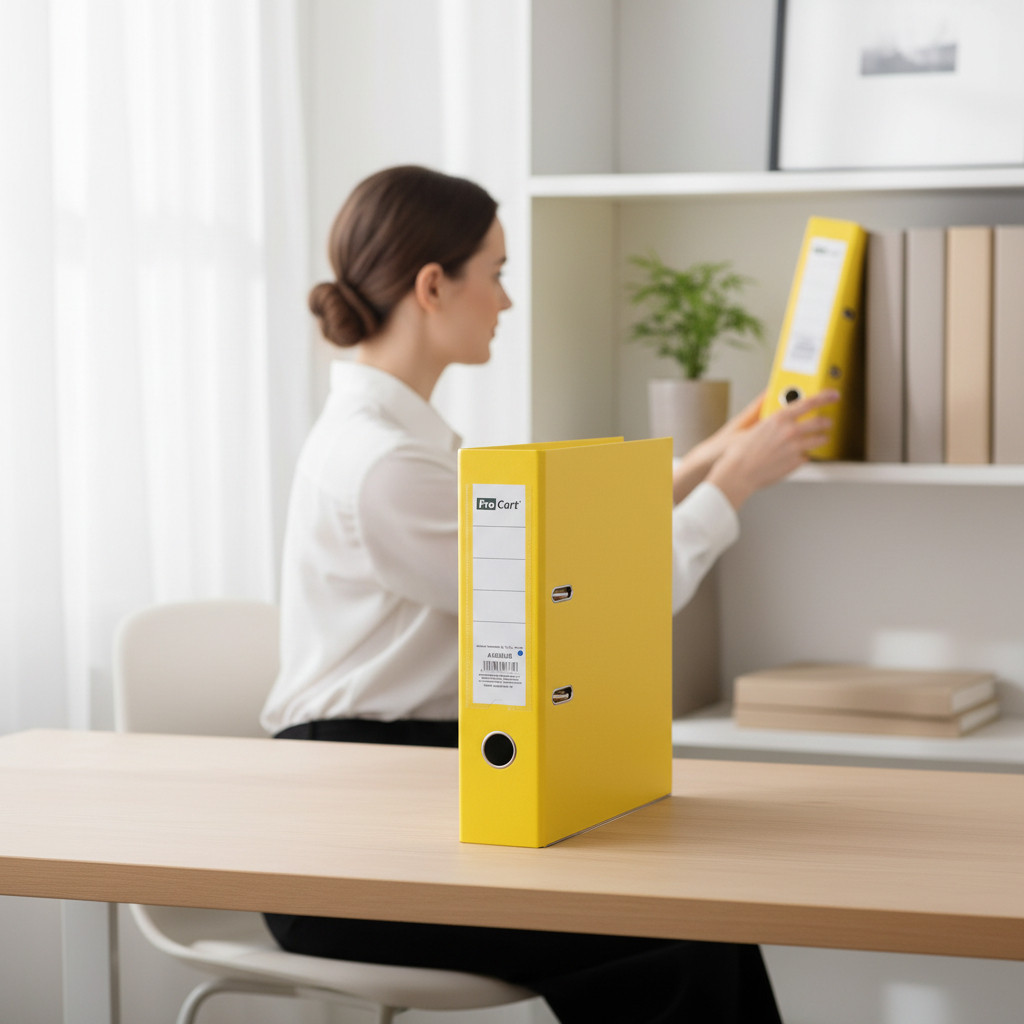 Biblioraftul A4 galben cu cotor de 7,5 cm este alegerea practică pentru organizarea și arhivarea documentelor la birou, în spații administrative sau acasă. Culoarea galbenă te ajută să identifici rapid dosarele pe raft și să separi ușor proiectele, departamentele sau tipurile de acte.