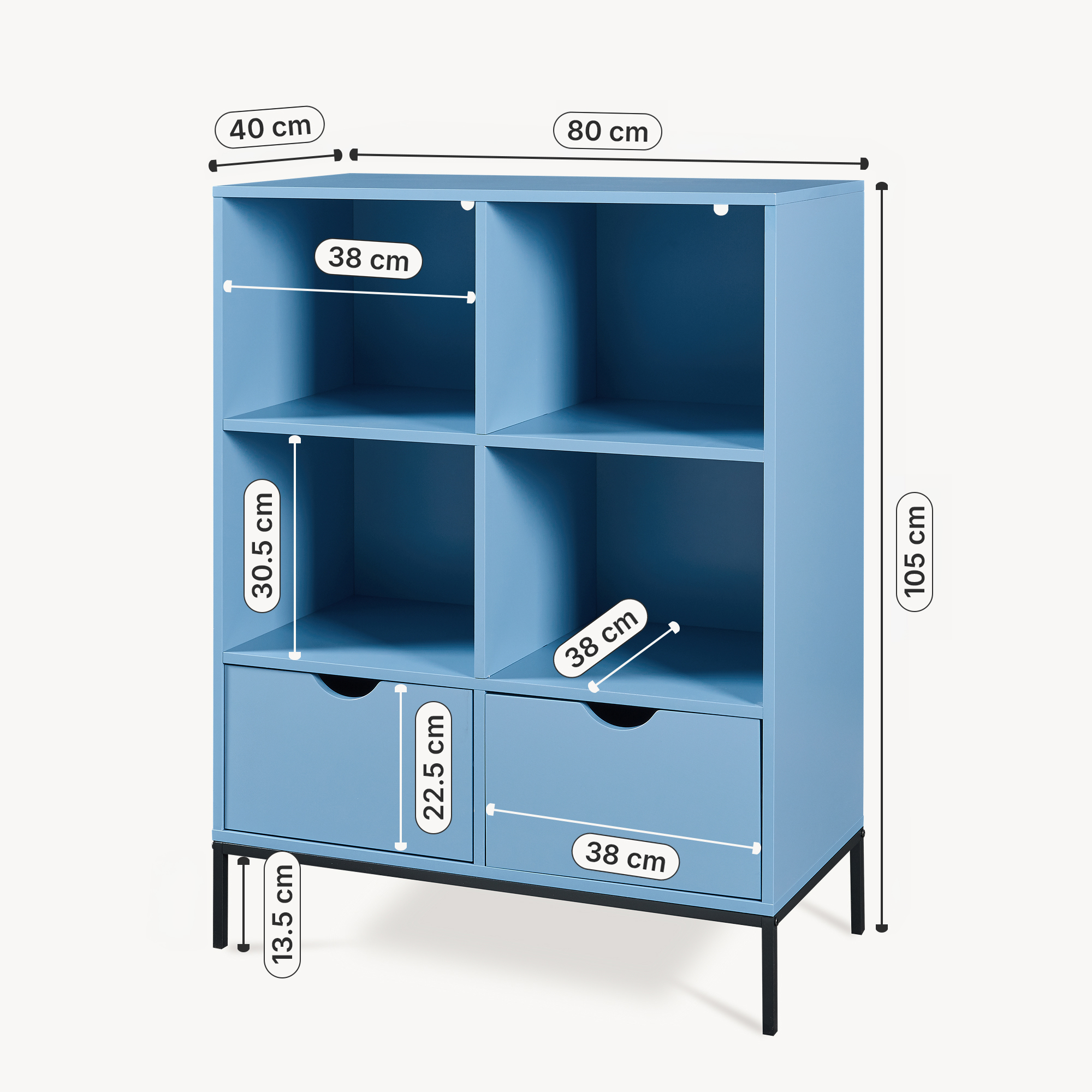 Descriere Bibliotecă albastră 2 sertare Colwyn, 105x80x40