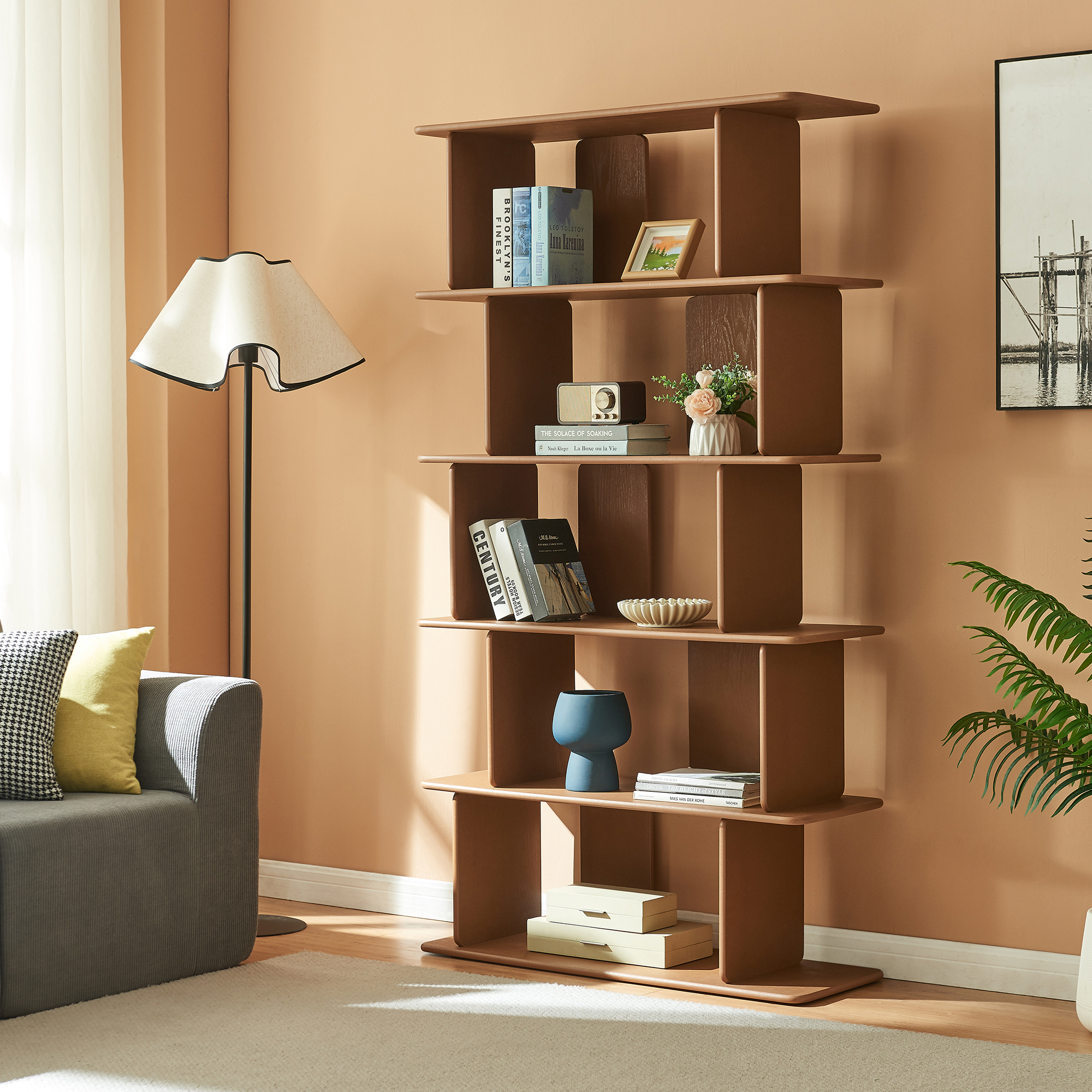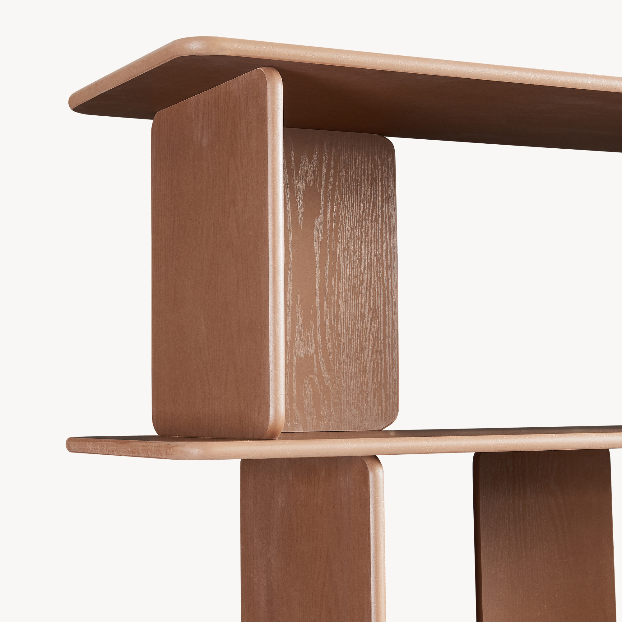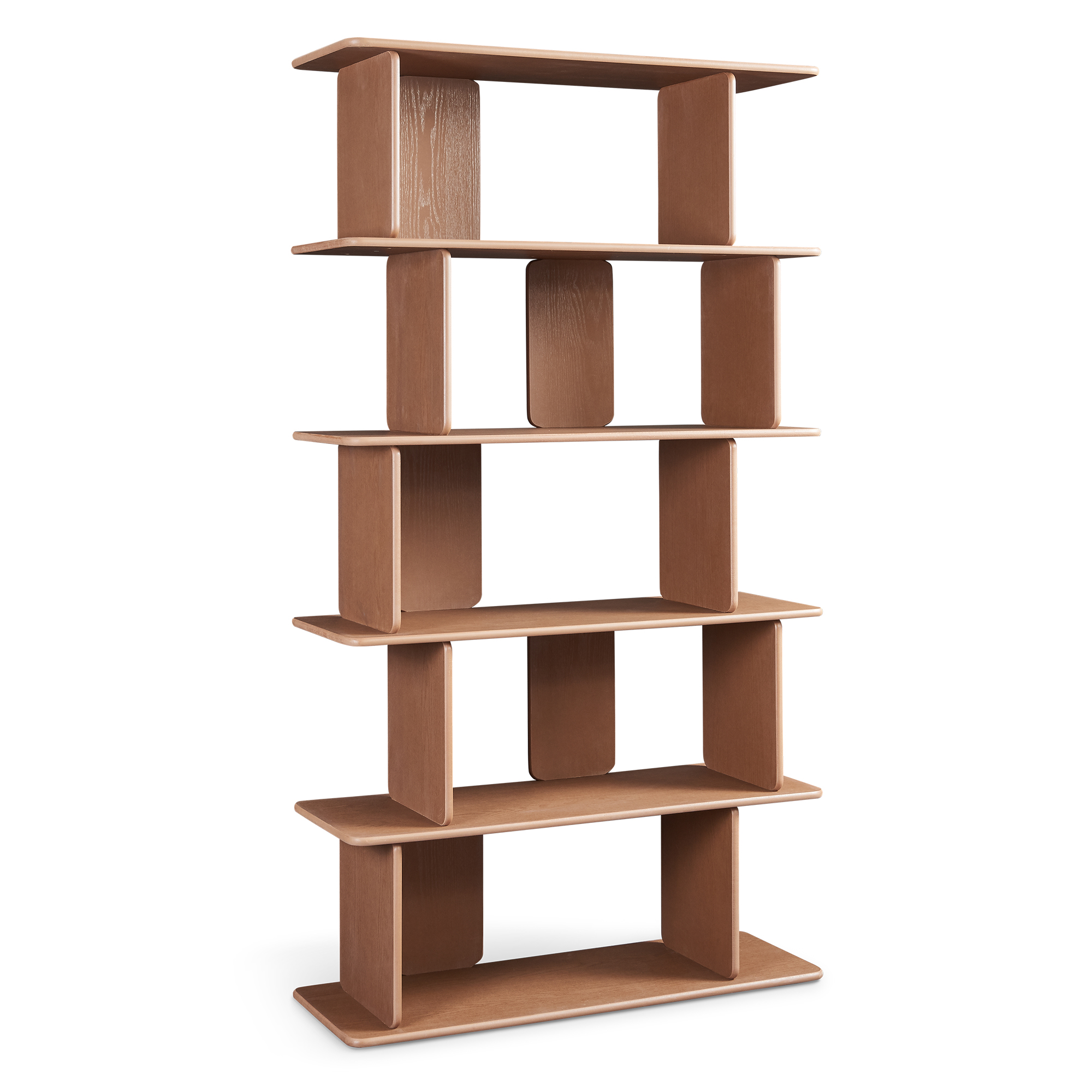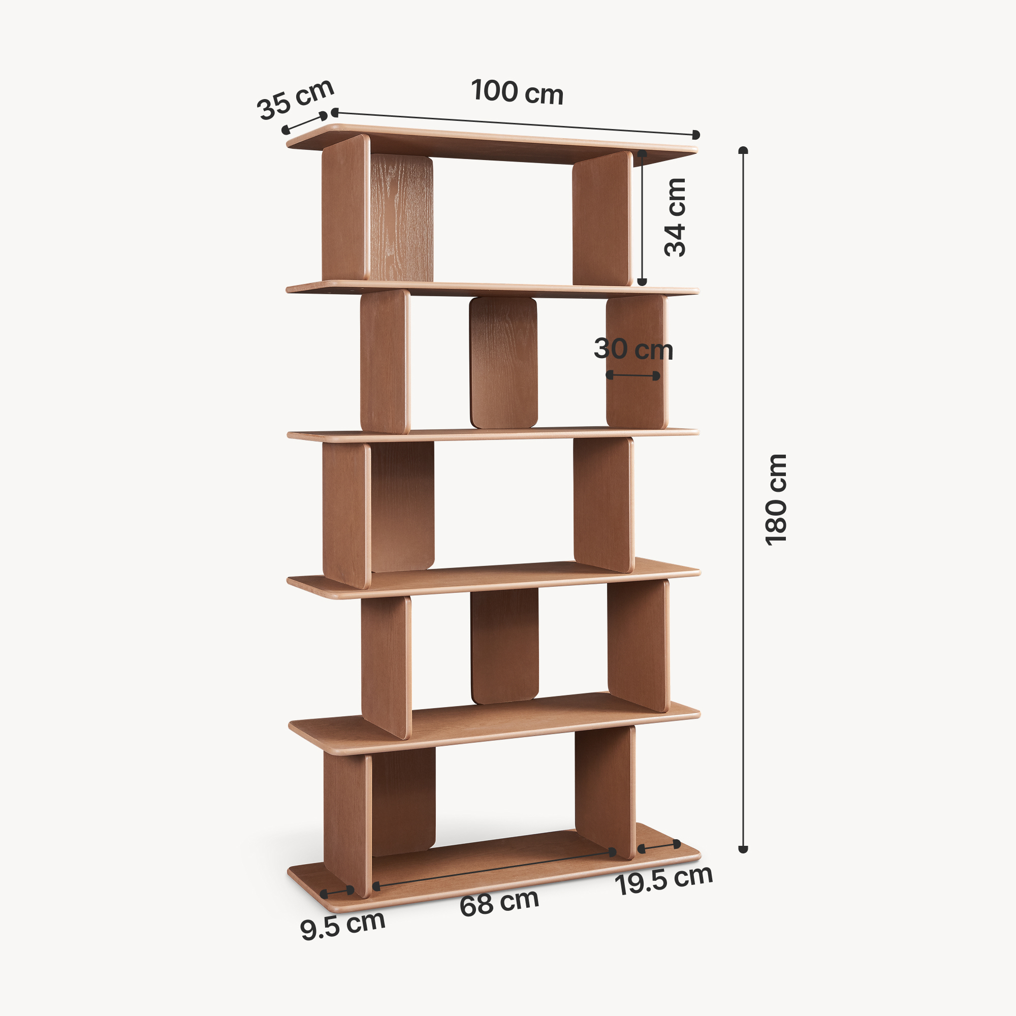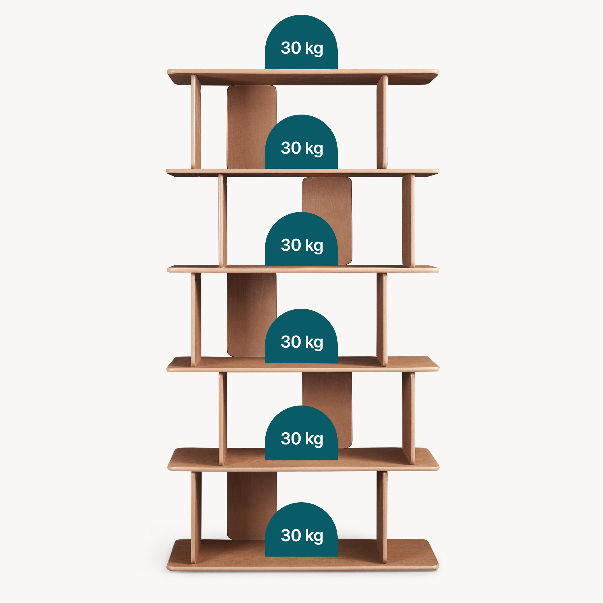 Cele 5 compartimente deschise, dispuse decalat, oferă loc suficient pentru cărți, decorațiuni, plante sau accesorii de zi cu zi. Forma sa aerisită păstrează obiectele preferate la îndemână și le pune frumos în valoare. În plus, poate fi folosită și ca separator de cameră, pentru delimitarea vizuală a spațiului.