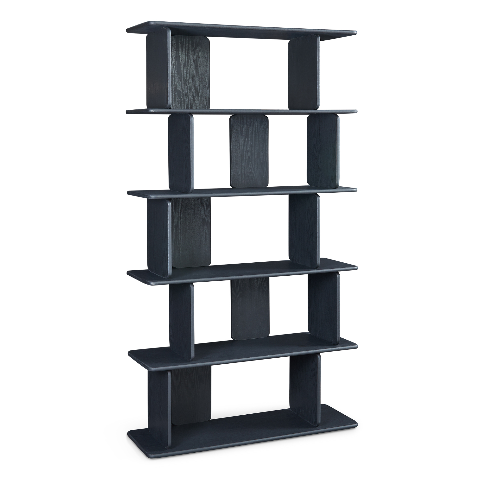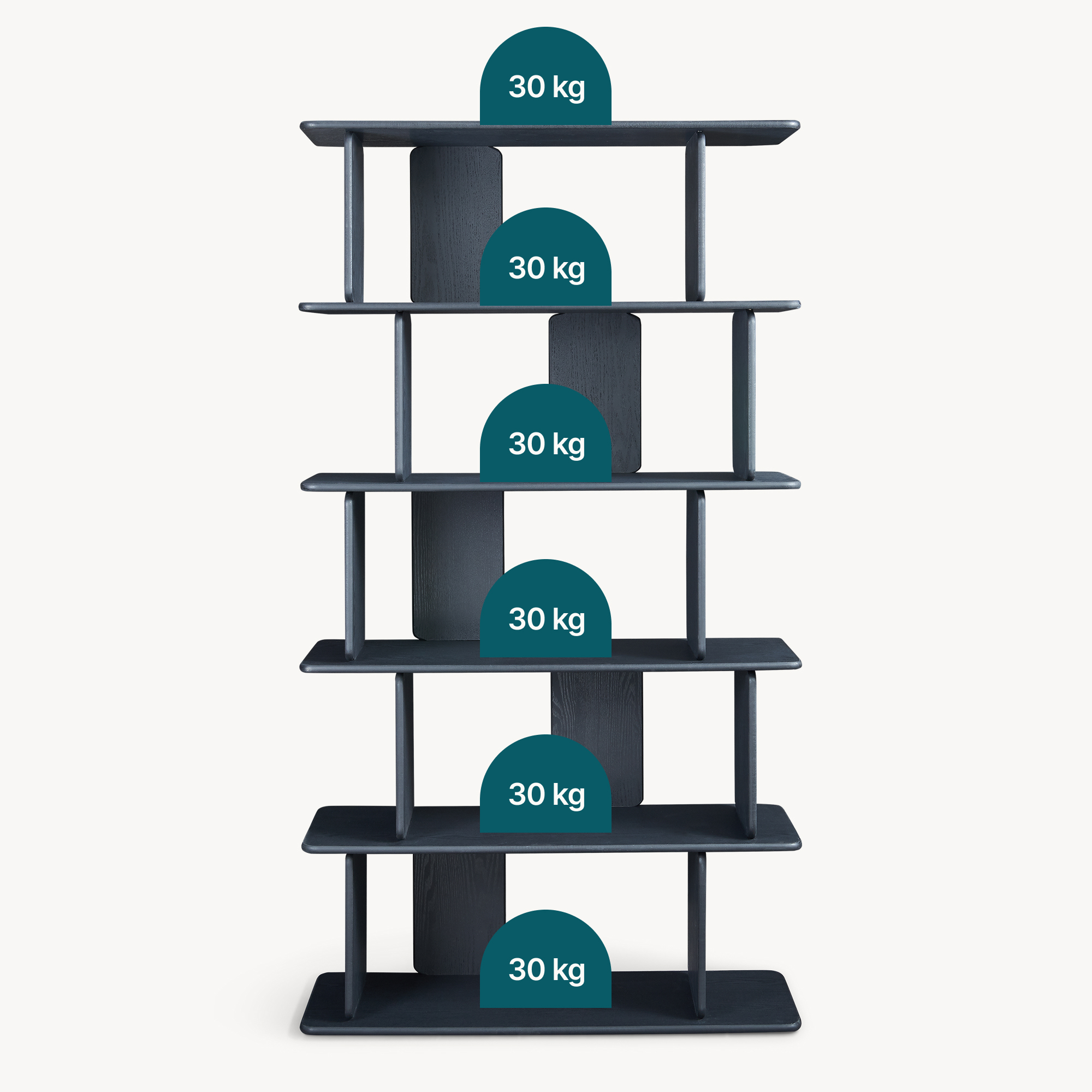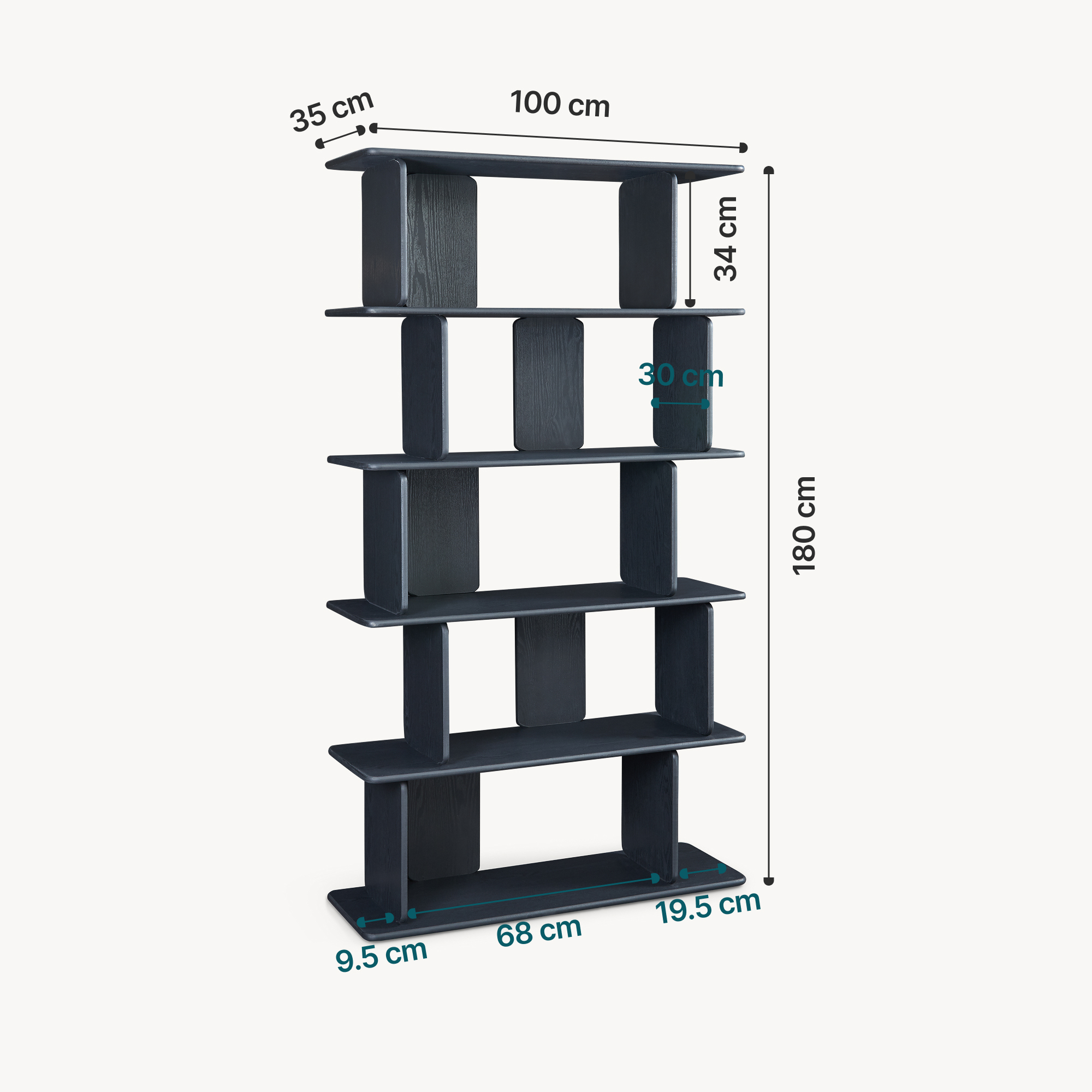 Cele cinci polițe dispuse alternativ oferă loc suficient pentru cărți, decorațiuni, plante sau accesorii de zi cu zi. Datorită compartimentării aerisite, această etajeră pentru living pune în valoare obiectele preferate și asigură acces rapid la ele. Poate fi folosită inclusiv ca raft despărțitor cameră, pentru delimitarea vizuală a spațiului.