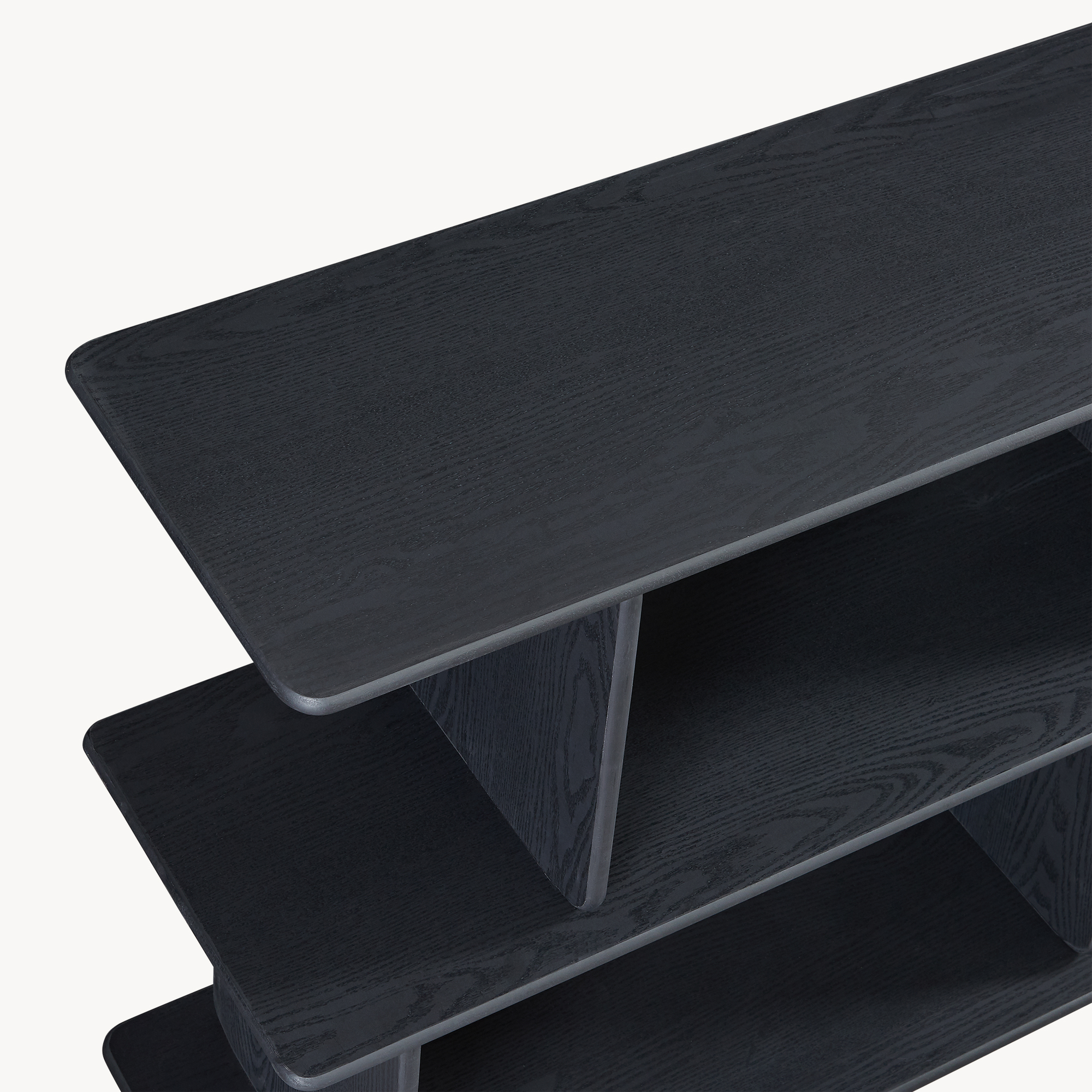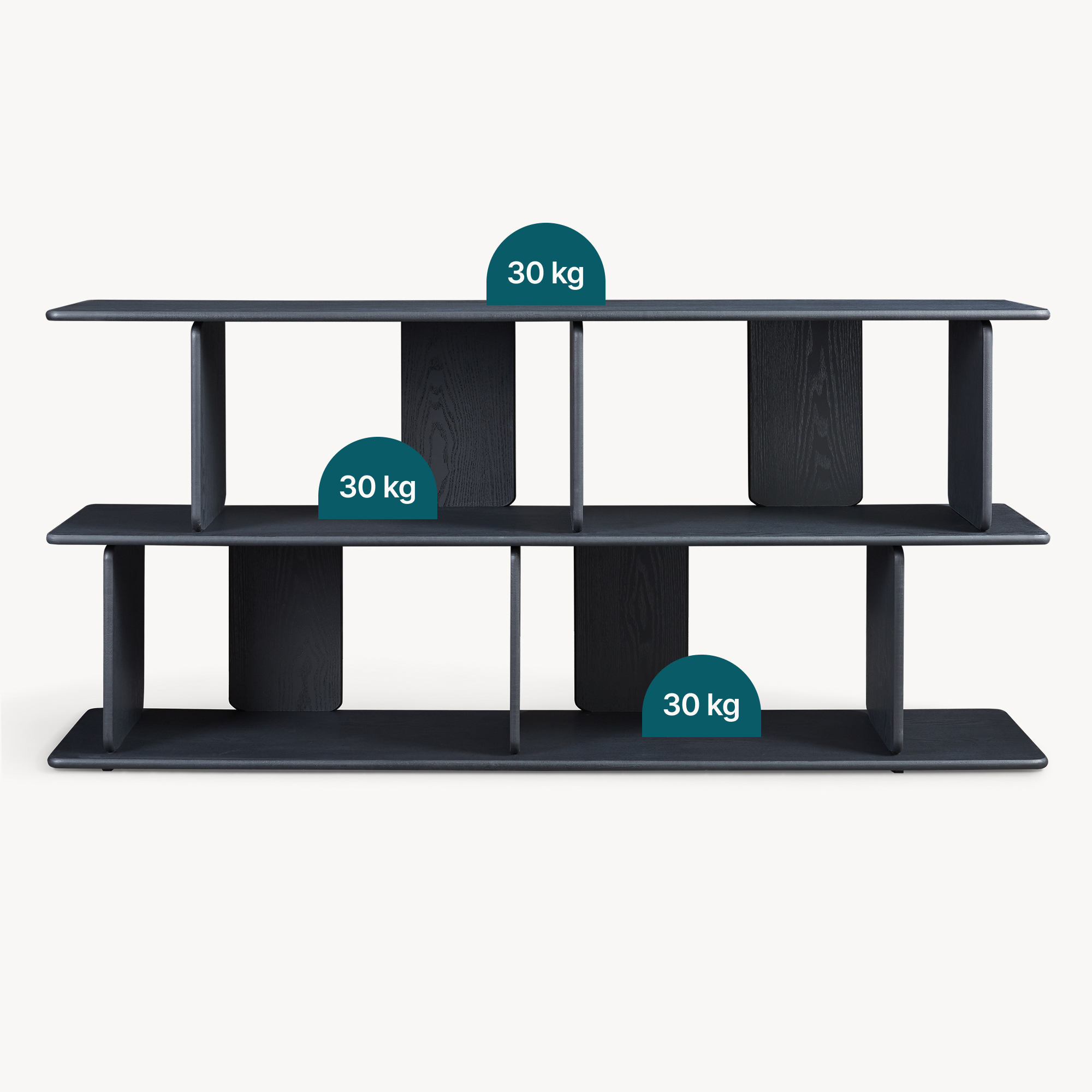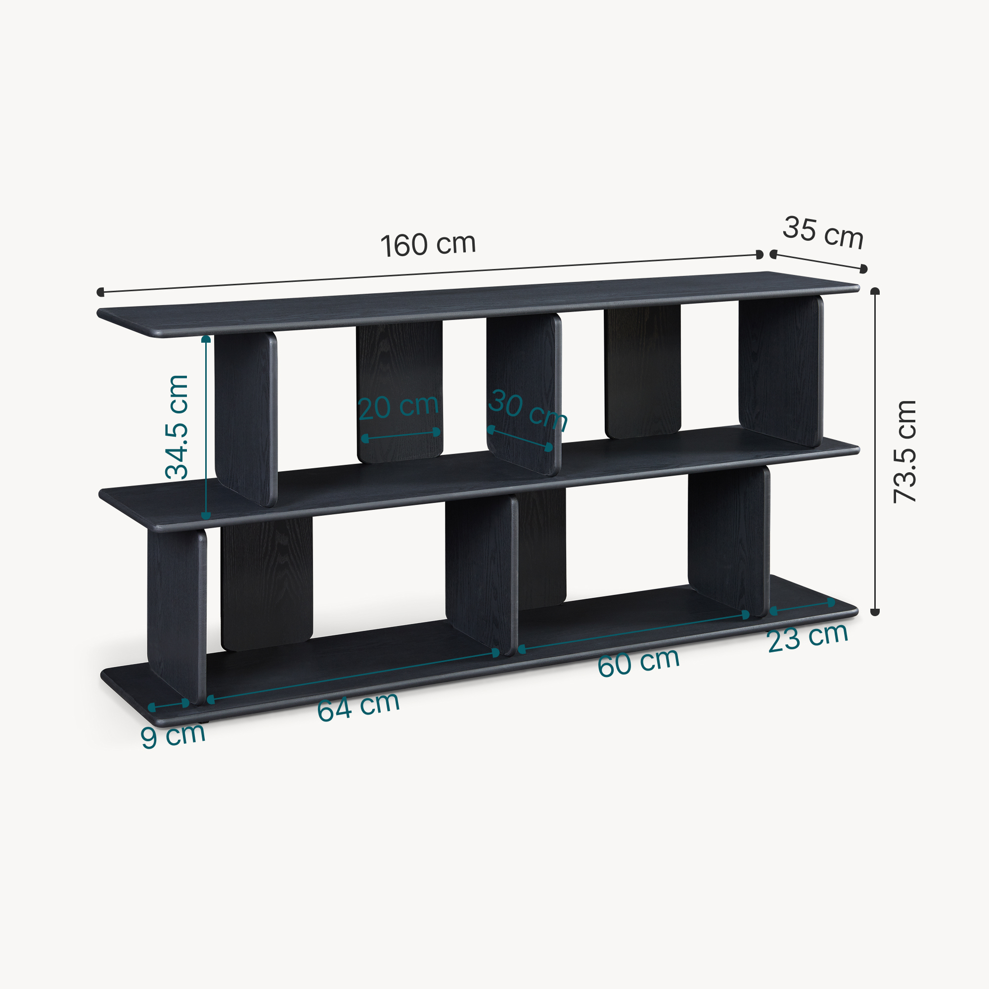 Folosește această etajeră joasă în living pentru cărți și decorațiuni, sub televizor pentru echipamente media și console, sau în birou pentru bibliorafturi, cutii și documente importante. Datorită formei sale, ajută la organizarea eficientă fără să încarce vizual încăperea.