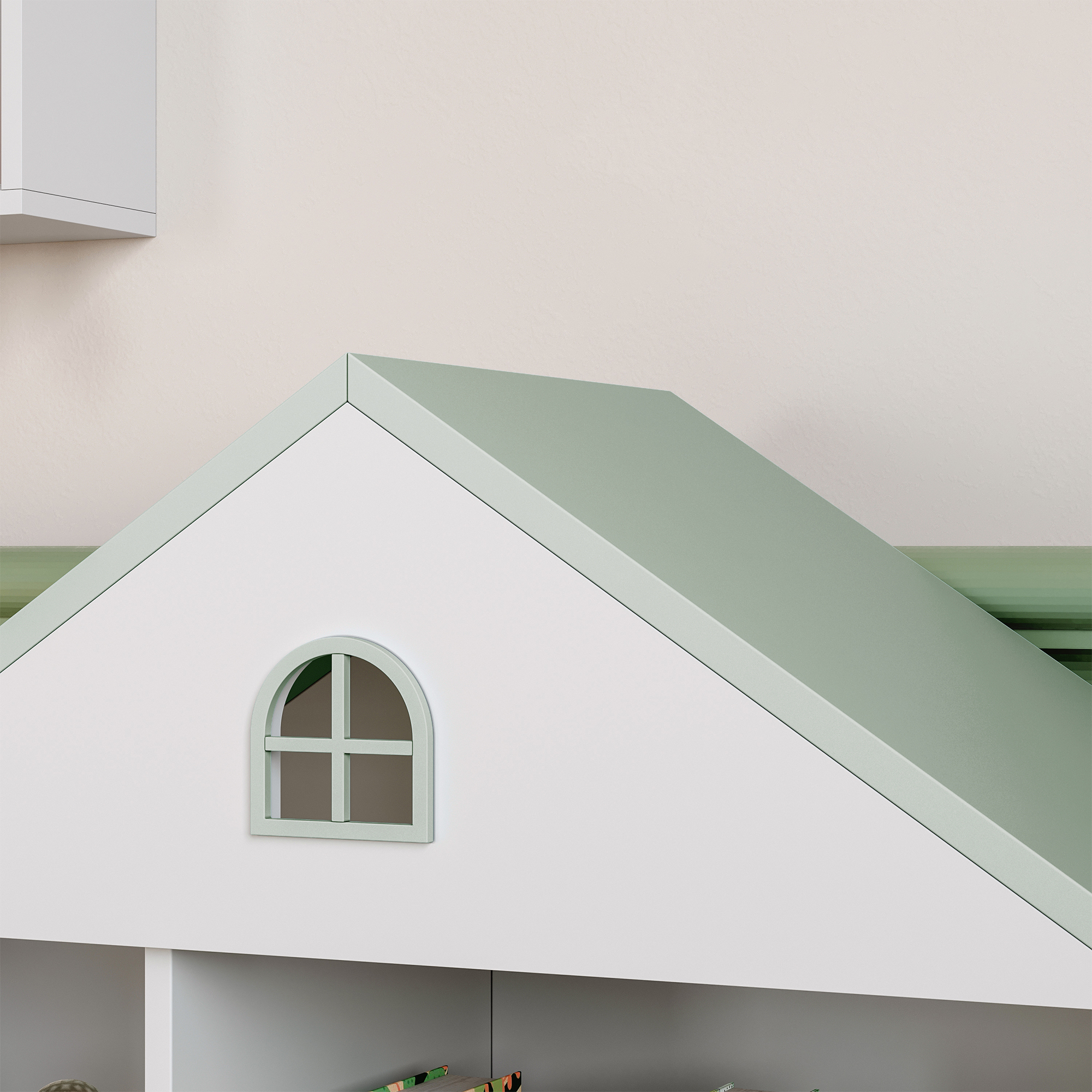 Bibliotecă pentru copii Vipsali tip căsuță, alb și verde mentă, 106,5x83x30 cm