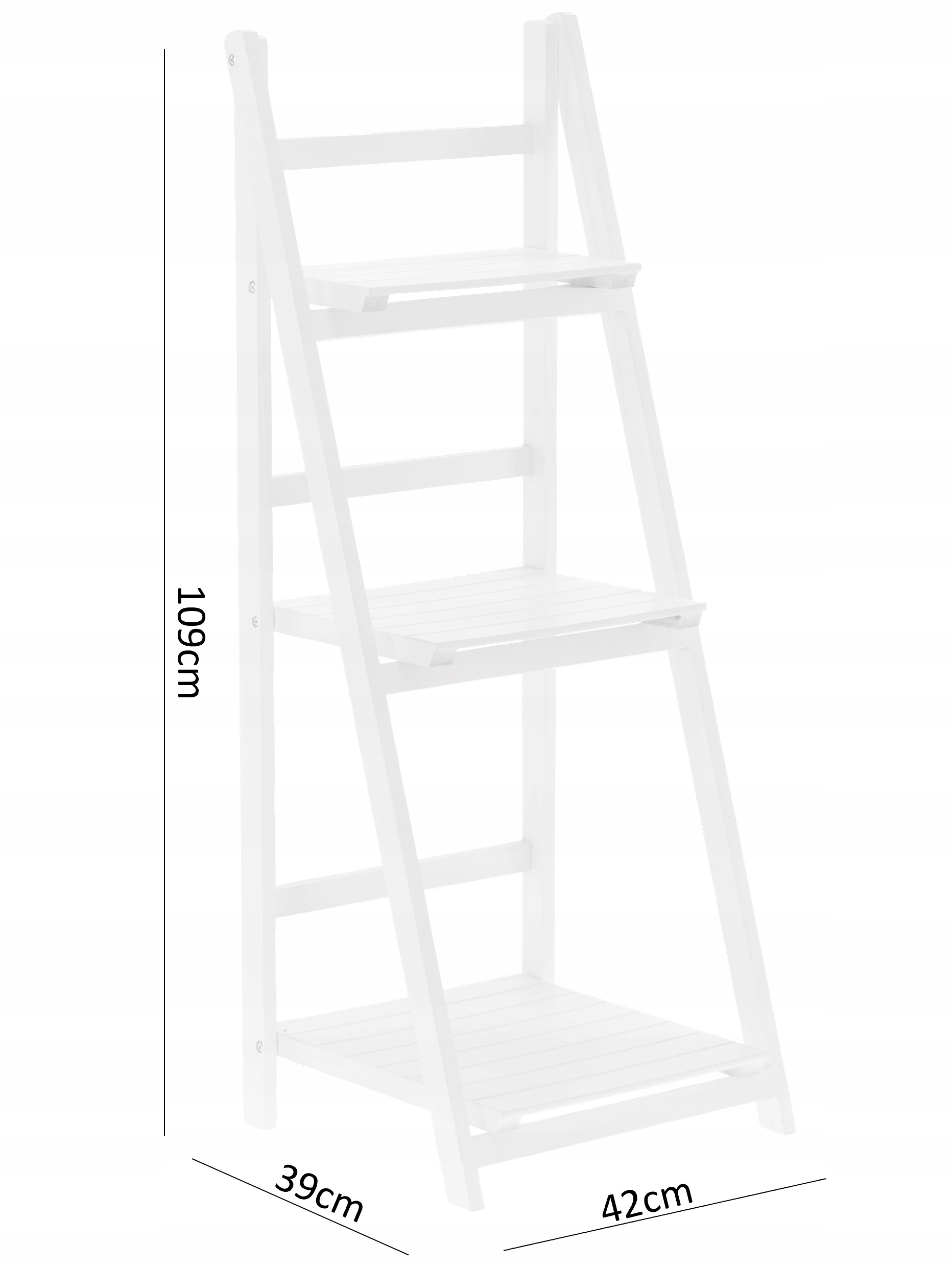 Biblioteca pliabila tip scara din lemn, 3 rafturi, 42x109x39 cm, alba