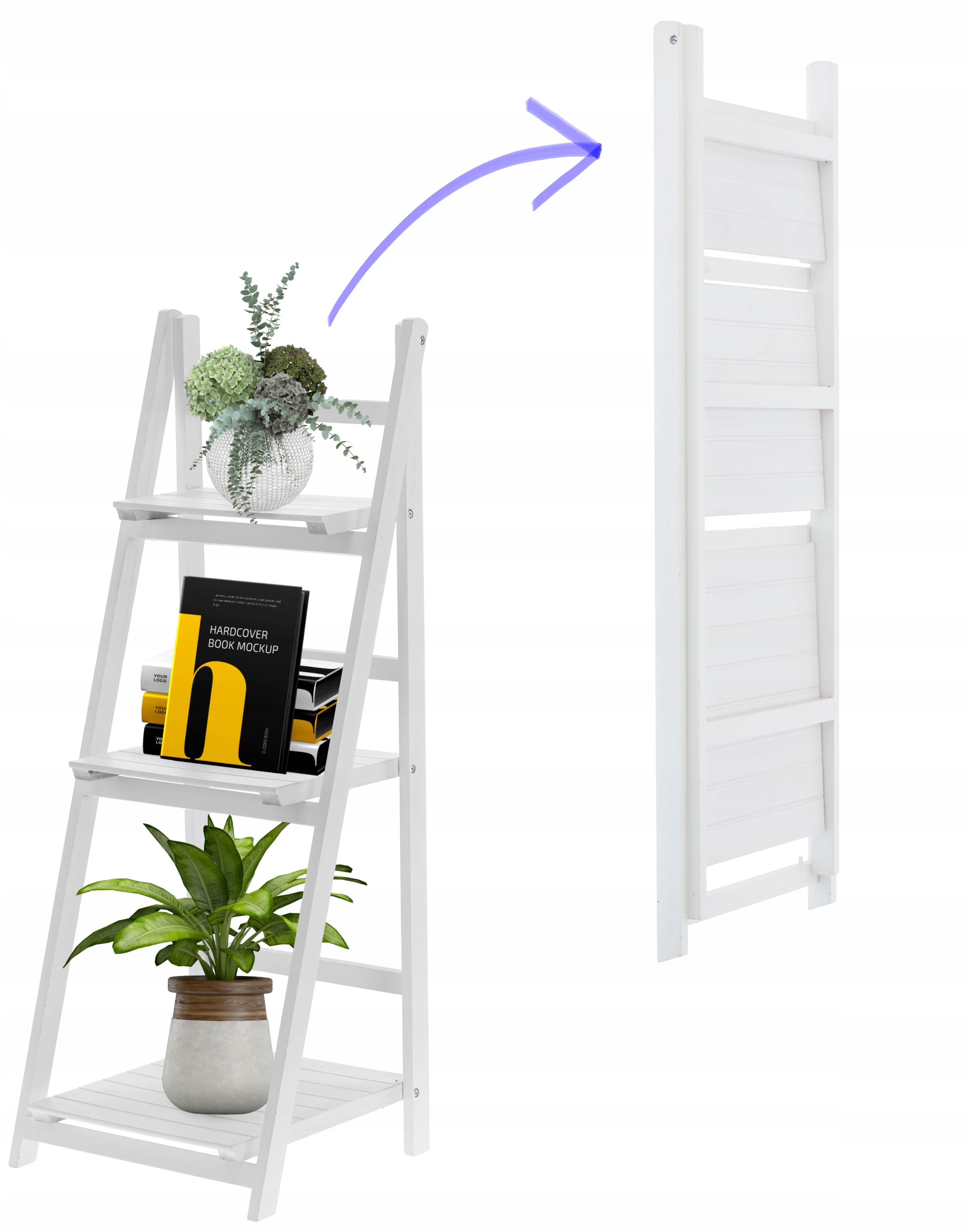 Alege o biblioteca pliabila din lemn care imbina designul simplu cu utilitatea de zi cu zi. Acest model tip scara, cu finisaj alb, este ideal pentru organizarea cartilor, decoratiunilor, plantelor sau accesoriilor, aducand un plus de luminozitate in orice incapere. Datorita formatului compact si aspectului modern, se potriveste excelent in living, dormitor, baie sau hol.
