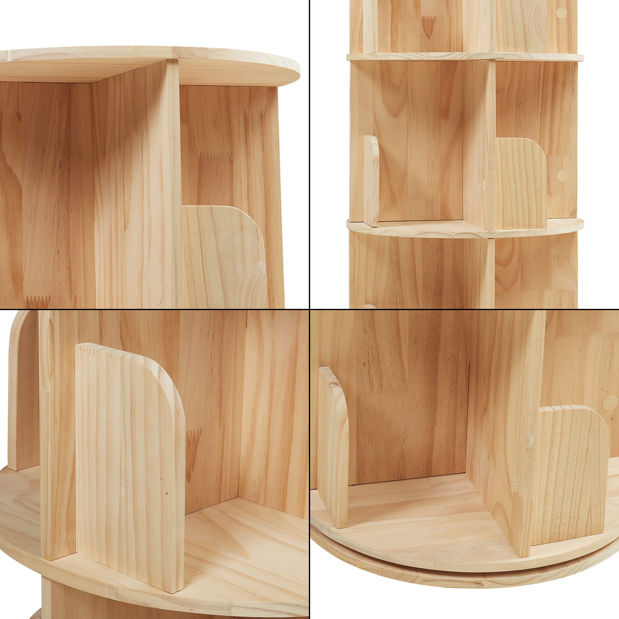 Bibliotecă rotativă pentru copii Chasek este o soluție practică și elegantă pentru organizarea cărților, caietelor, jucăriilor sau decorațiunilor din camera copilului. Realizată din lemn de pin în finisaj natur, această bibliotecă rotativă oferă acces ușor din toate părțile și încurajează copiii să își păstreze lucrurile în ordine, datorită înălțimii potrivite pentru utilizare zilnică.