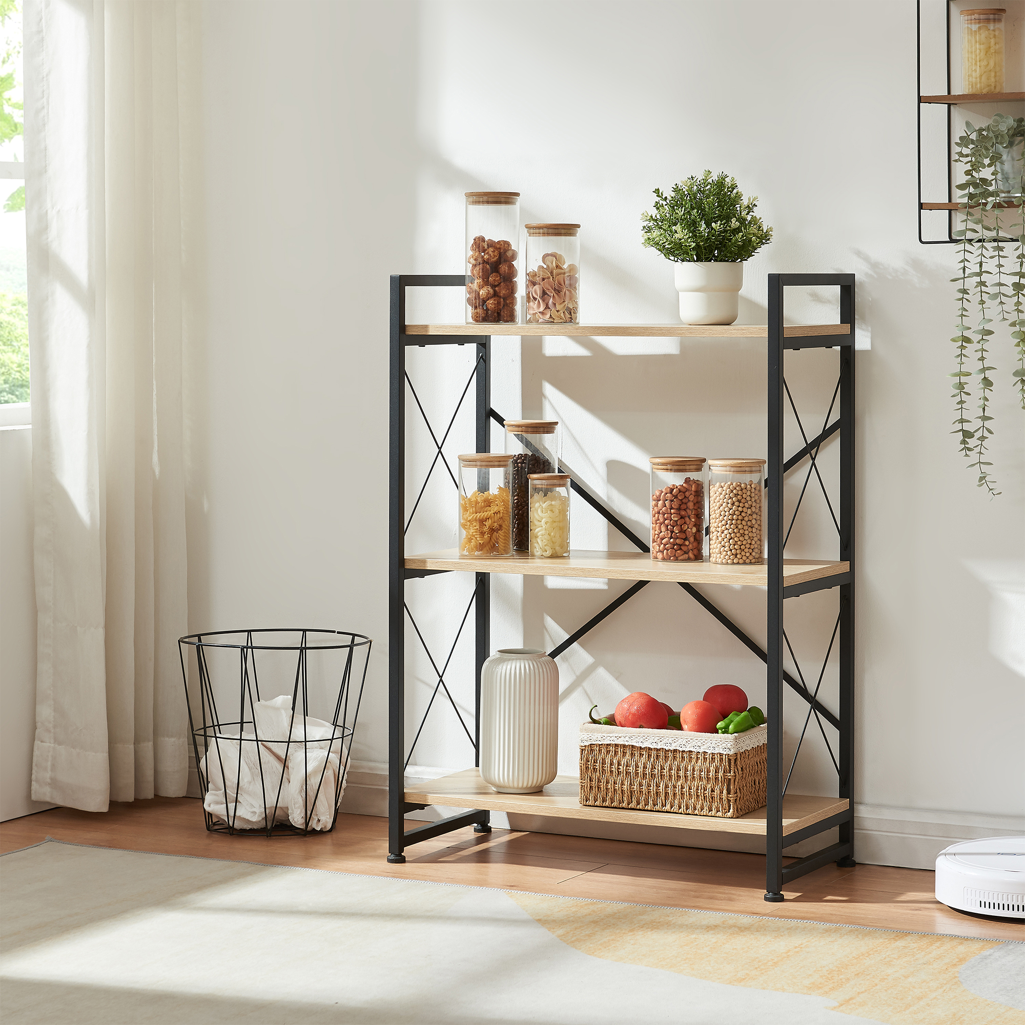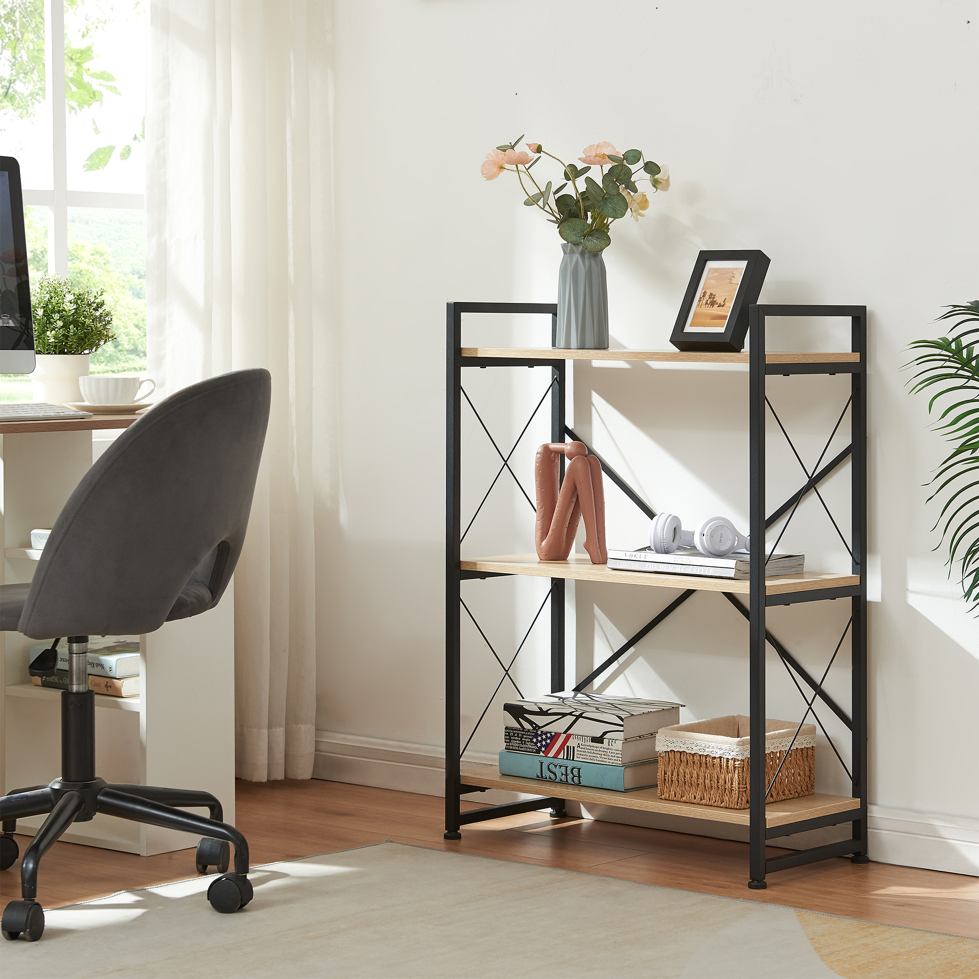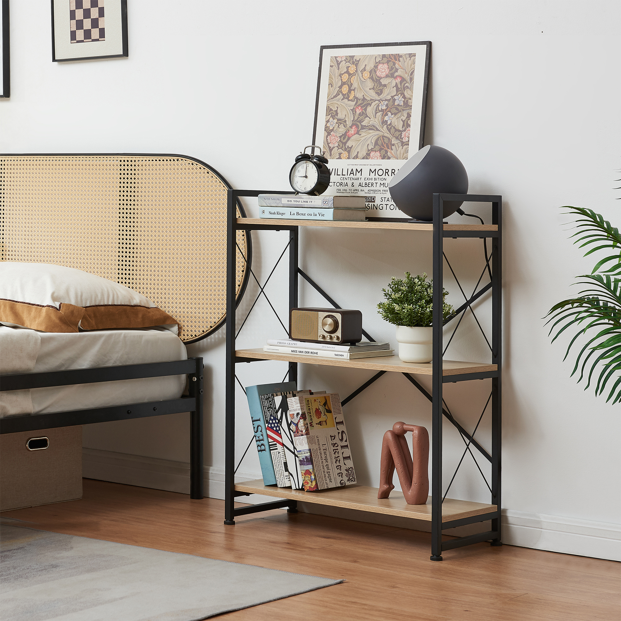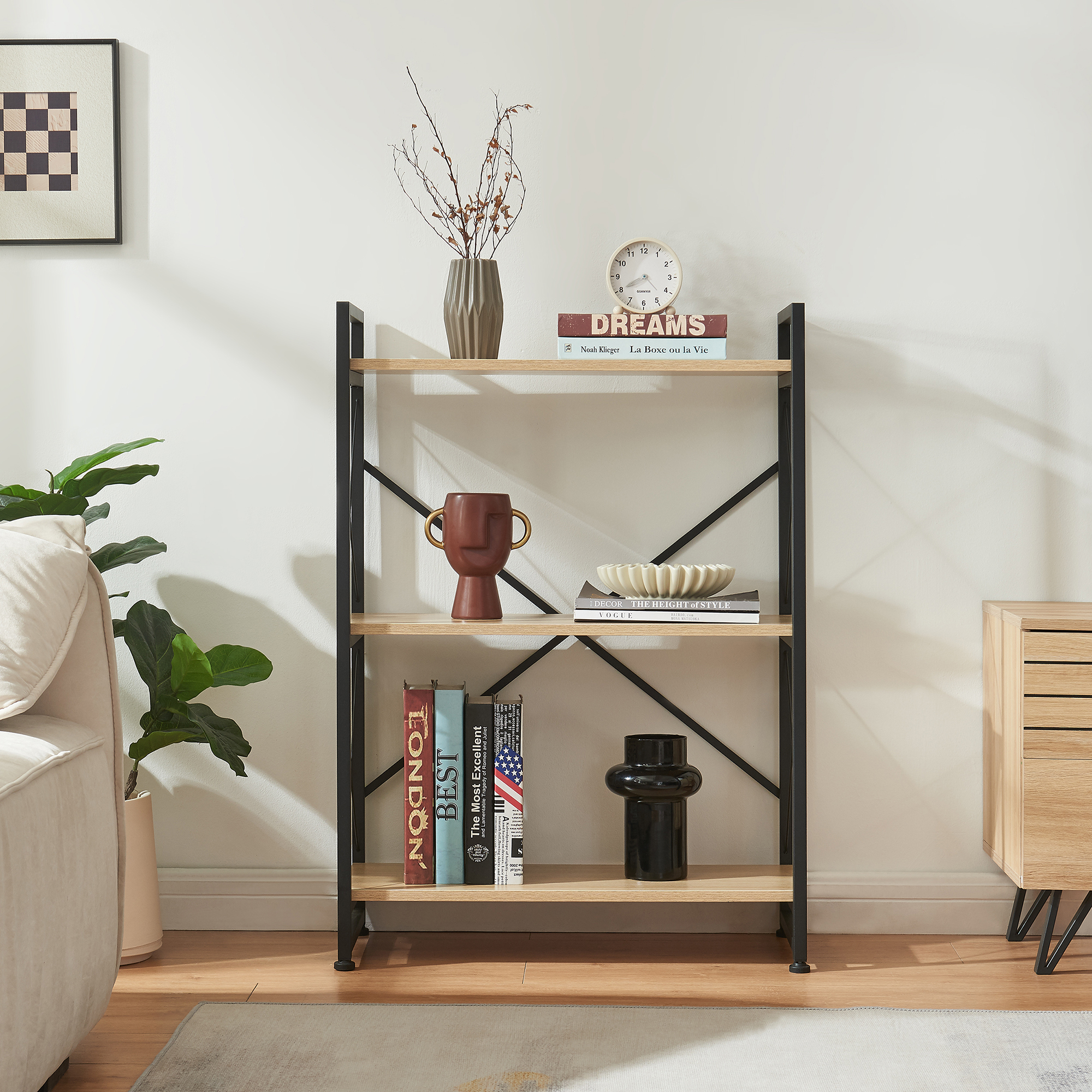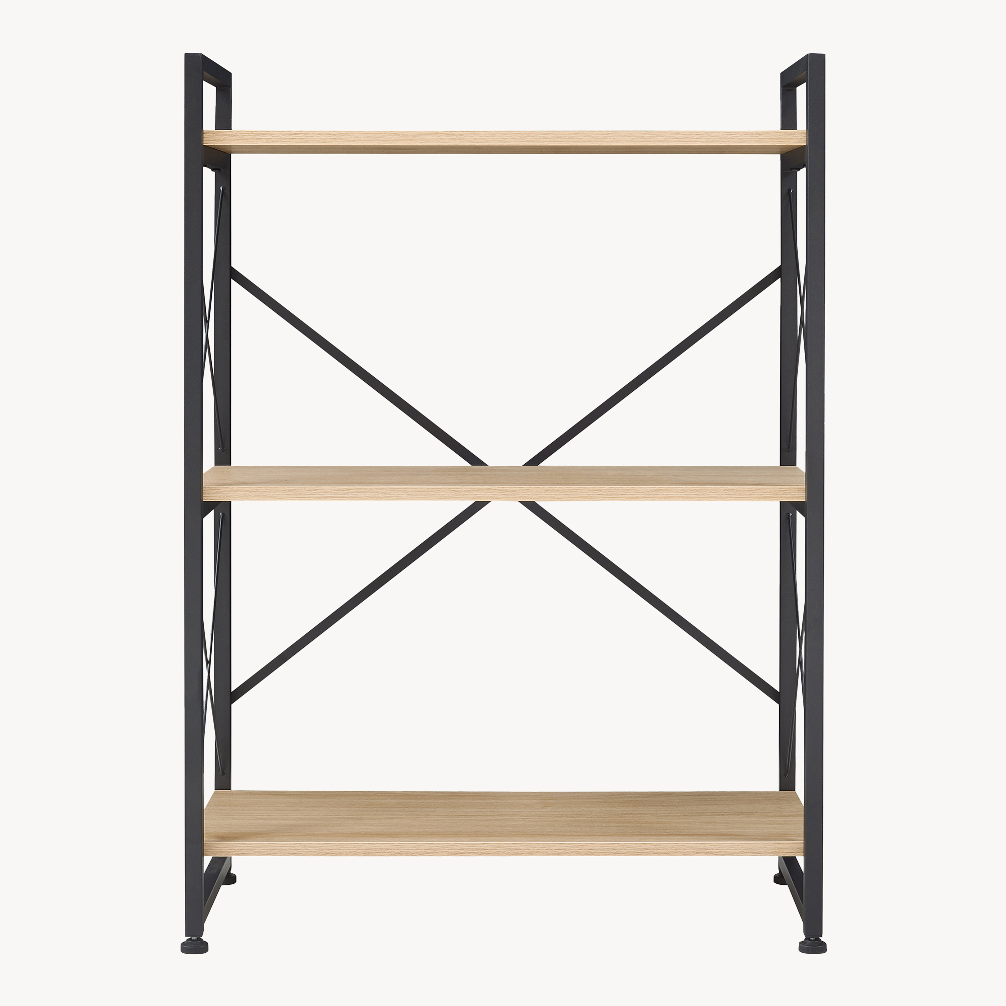 Bibliotecă Skørping cu 3 polițe, metal negru și finisaj stejar, 90x65x30 cm