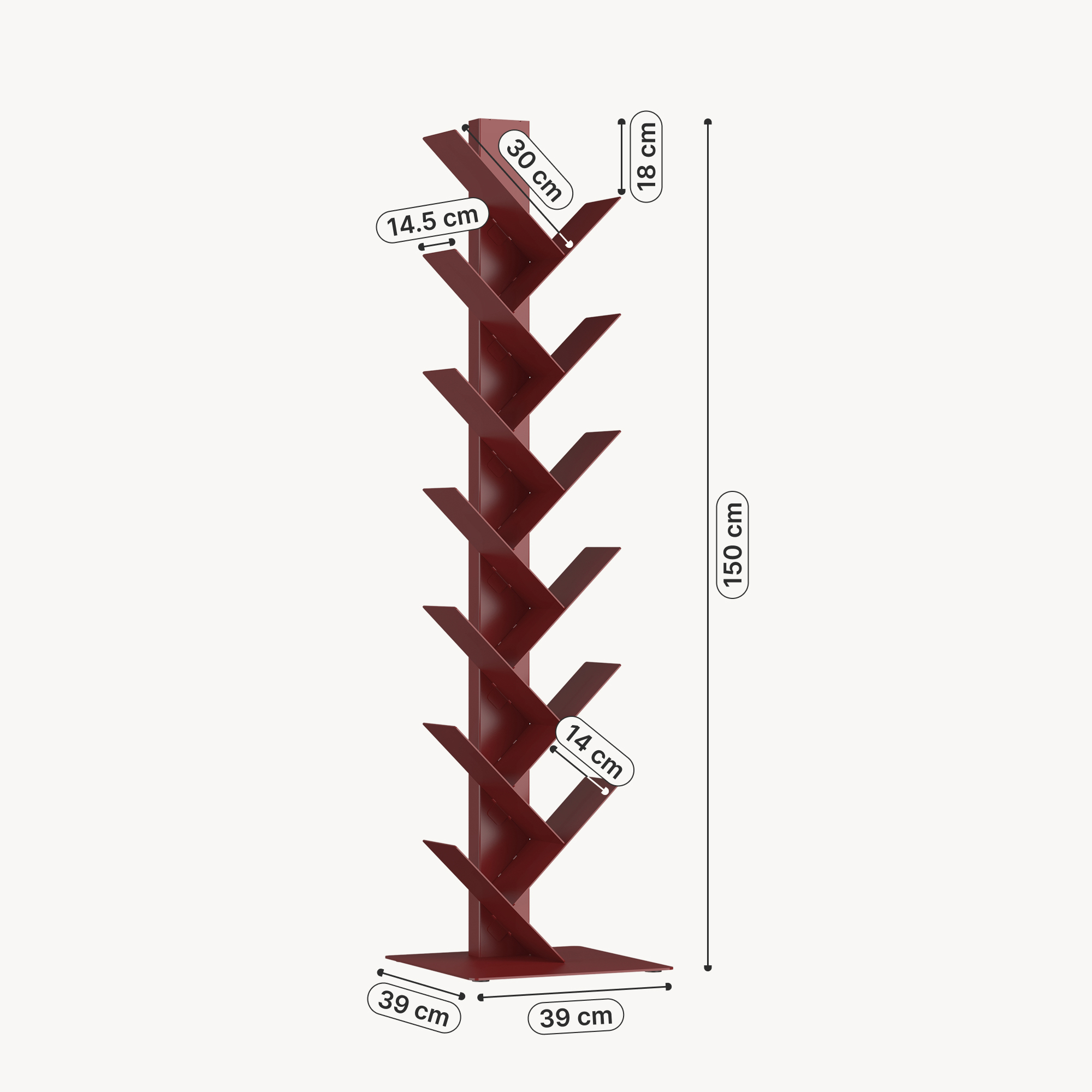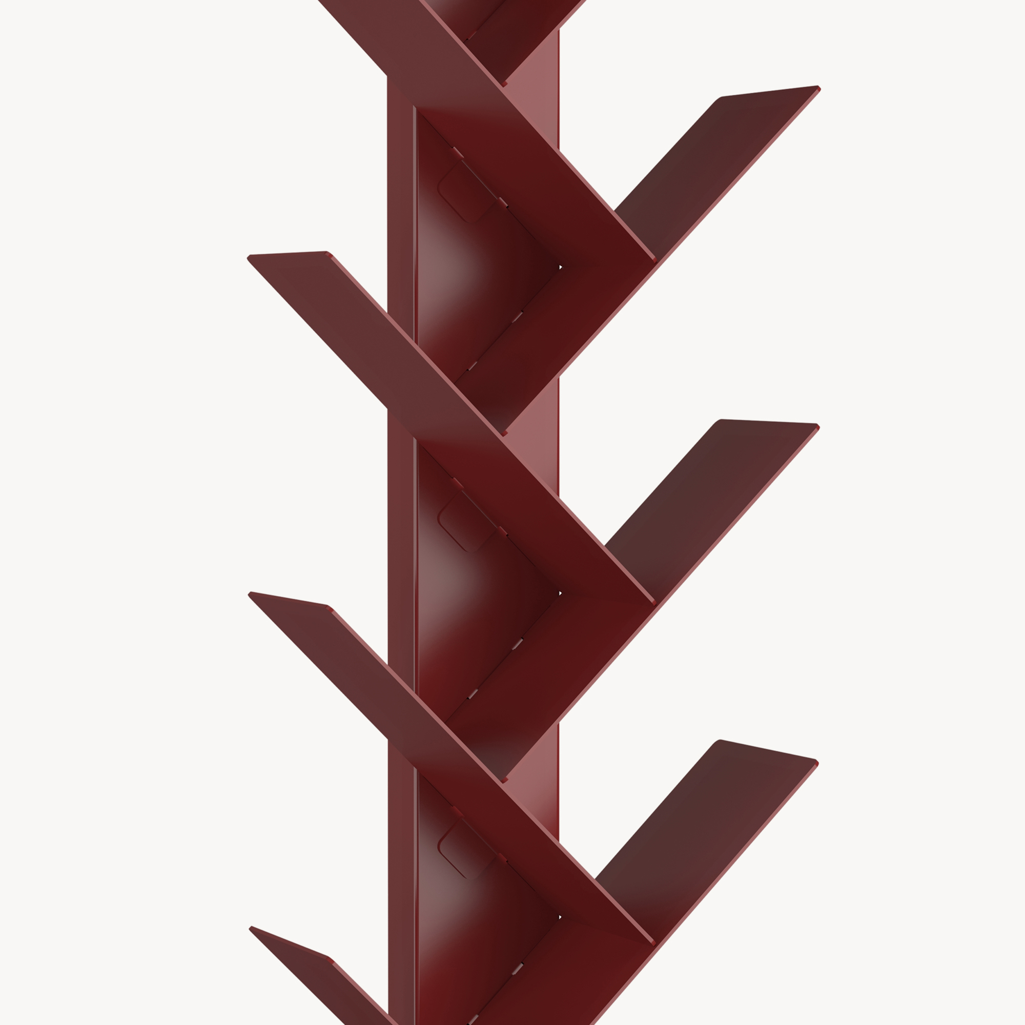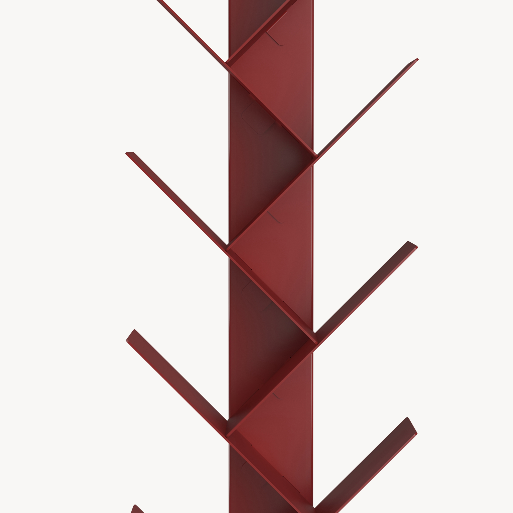 Biblioteca tip copac este alegerea ideală dacă îți dorești un spațiu de depozitare practic, dar și un accent decorativ deosebit. Cu un design modern și elegant, acest raft pentru cărți din oțel roșu mat pune în valoare volumele, CD-urile, DVD-urile sau Blu-ray-urile și folosește eficient spațiul disponibil pe verticală.