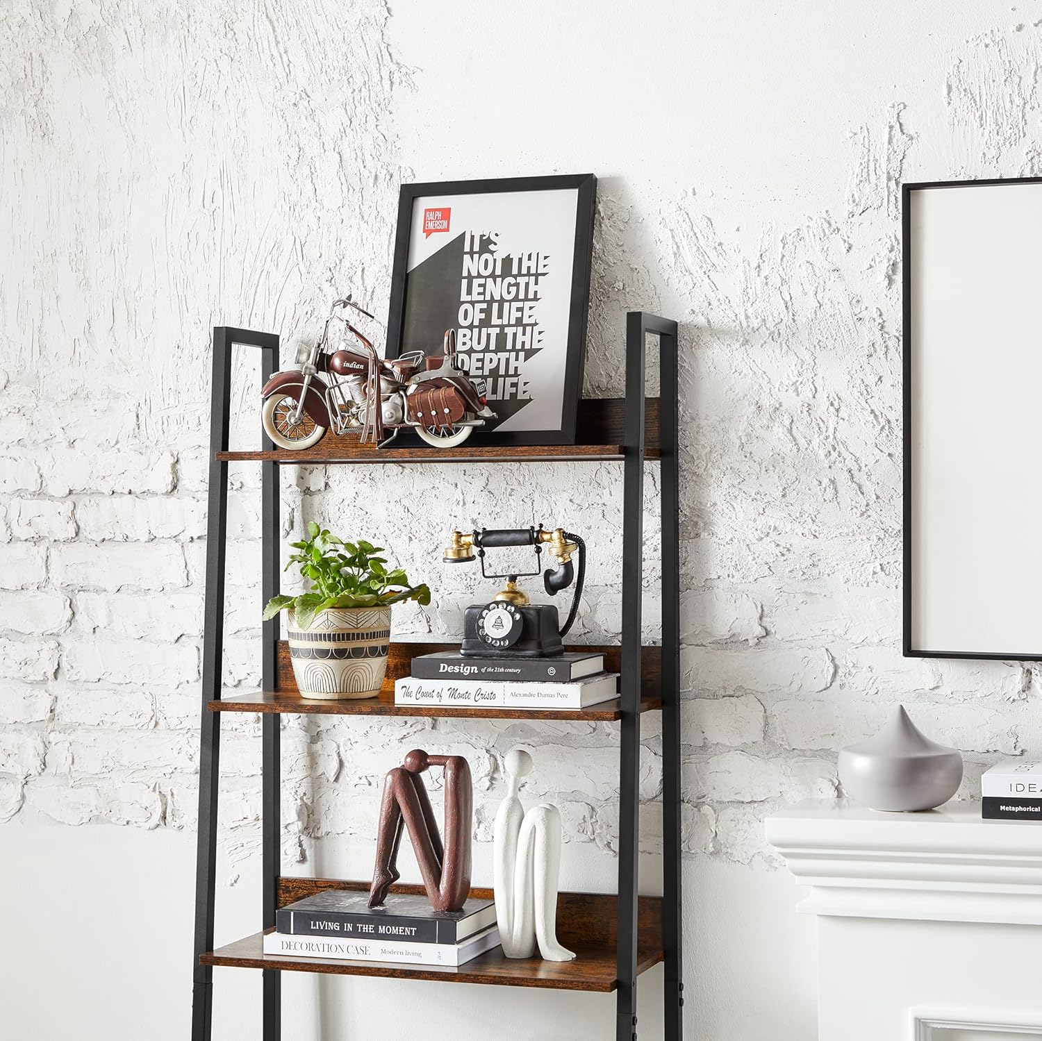 Bibliotecă tip scară VASAGLE cu 5 polițe, cadru metalic, maro rustic