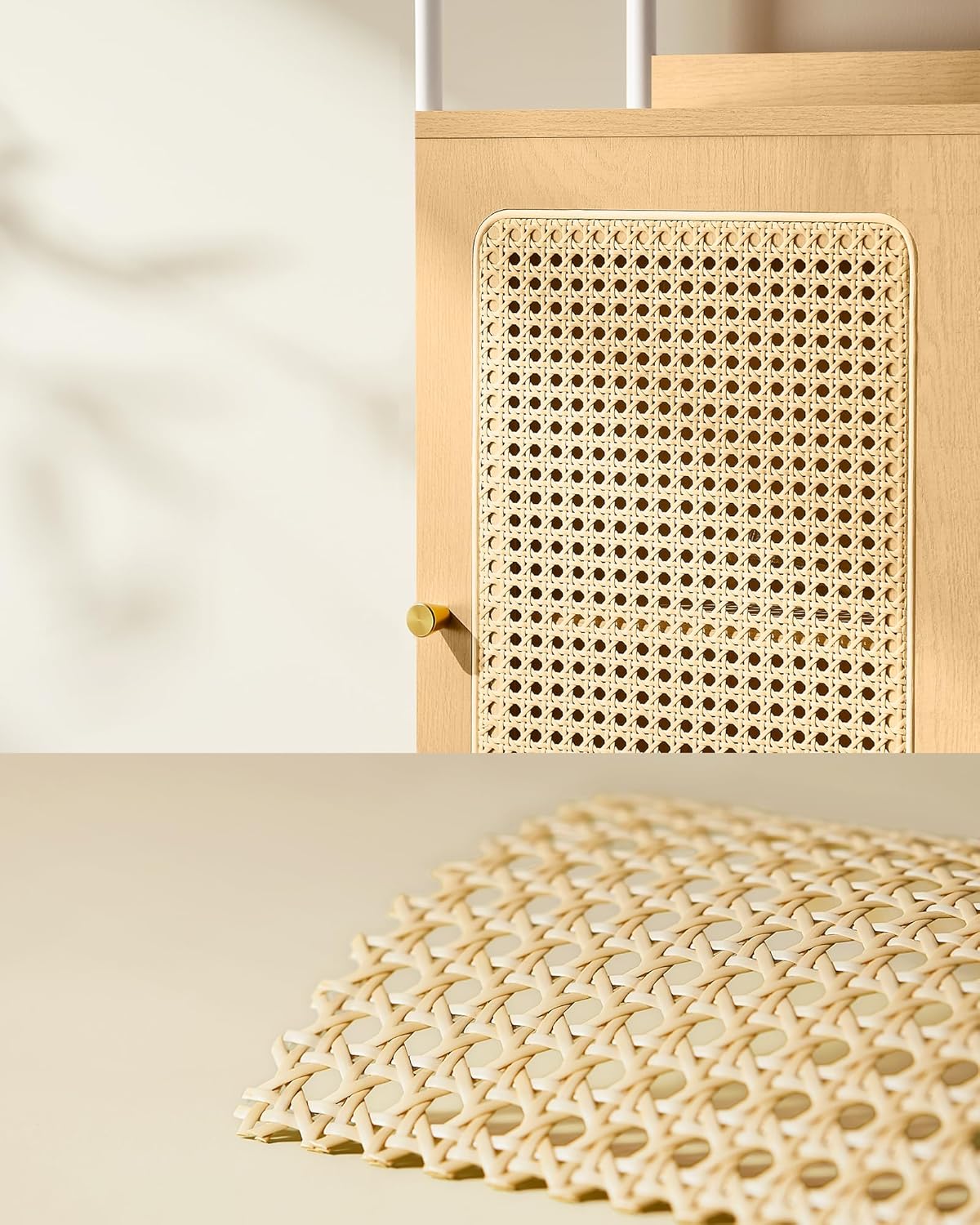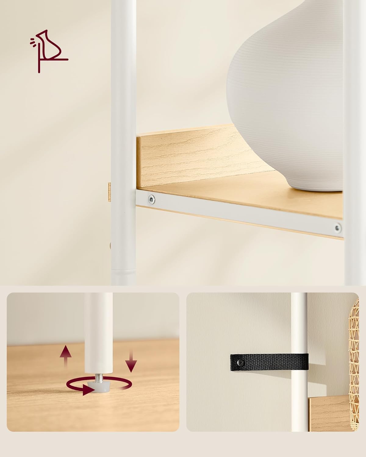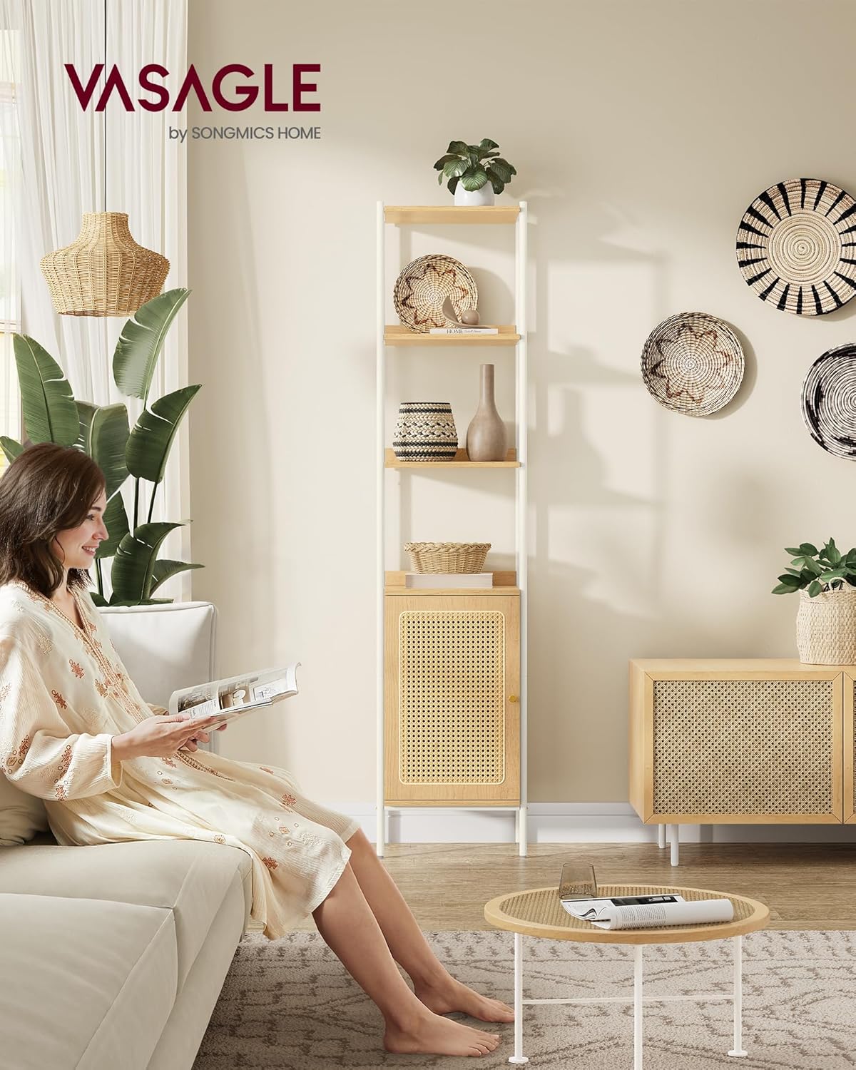 Biblioteca VASAGLE Boho cu 6 etaje si usa tip ratan, alb-bej, 175 cm