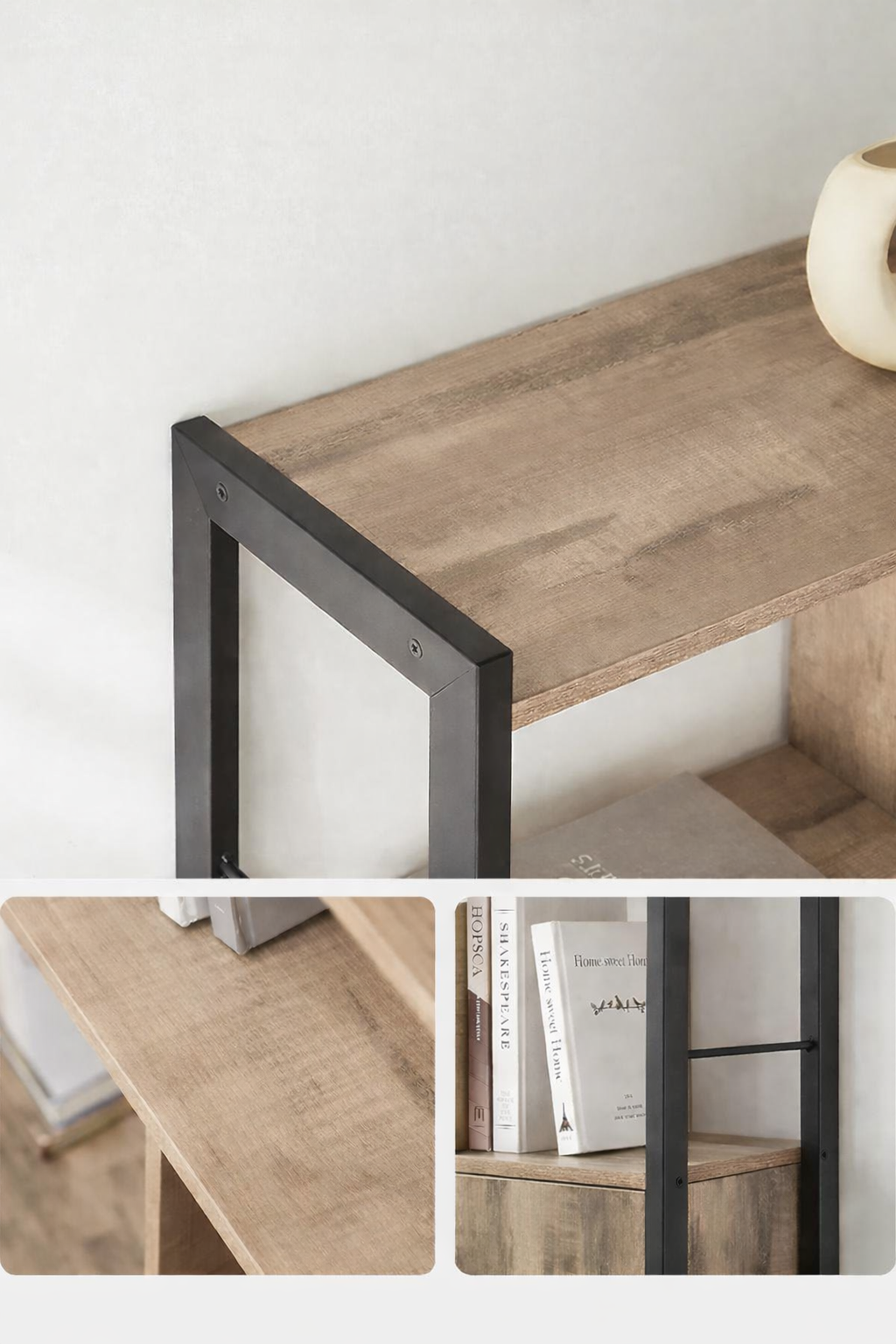 Cu un design în nuanță de stejar toast și cadru metalic negru, această bibliotecă pentru living sau birou se integrează ușor în amenajări industriale, loft sau contemporane. Construcția din PAL și oțel oferă un bun echilibru între rezistență, stabilitate și aspect plăcut, iar picioarele reglabile ajută la poziționarea corectă chiar și pe suprafețe ușor denivelate.