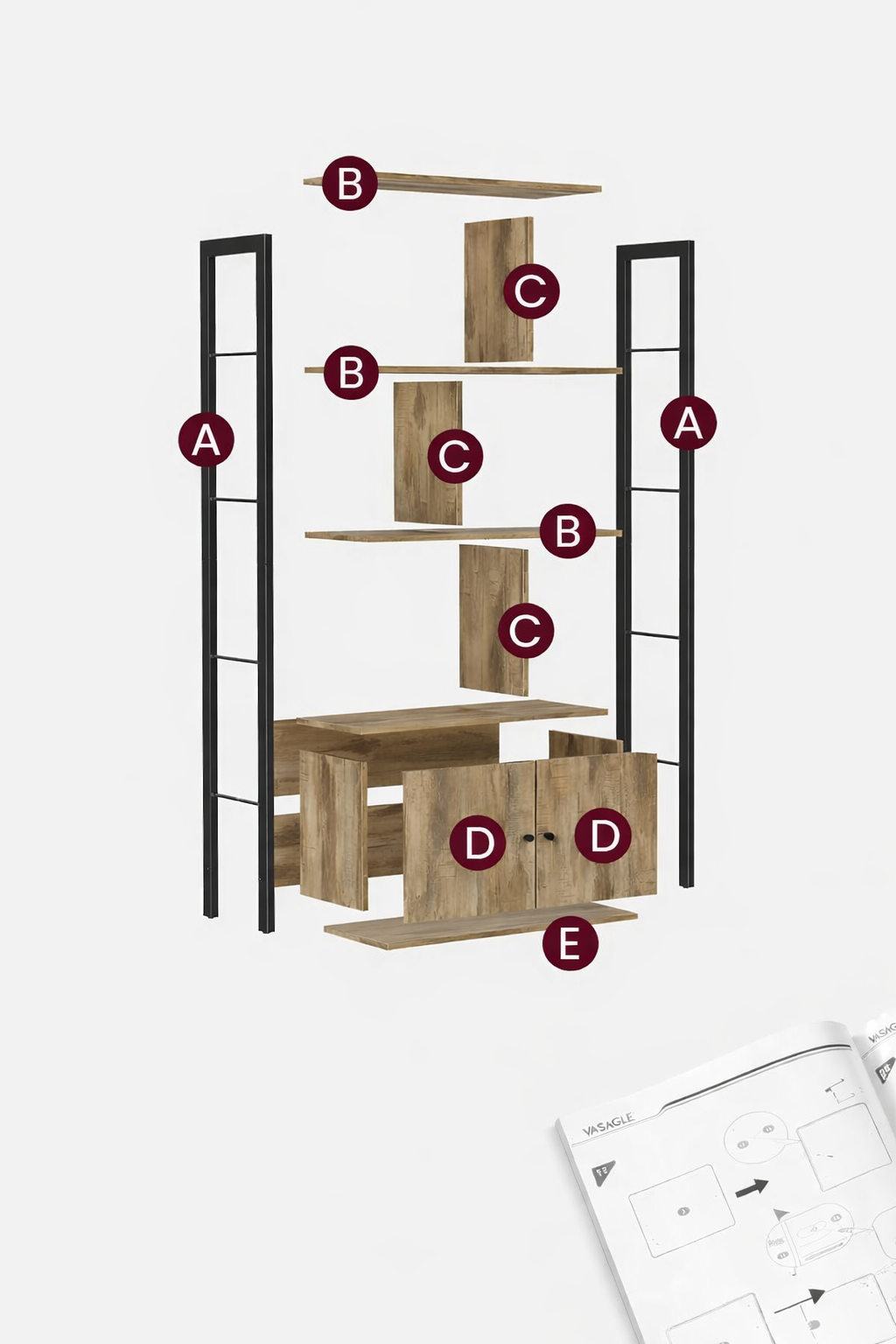 Descriere Bibliotecă VASAGLE 4 rafturi și dulap