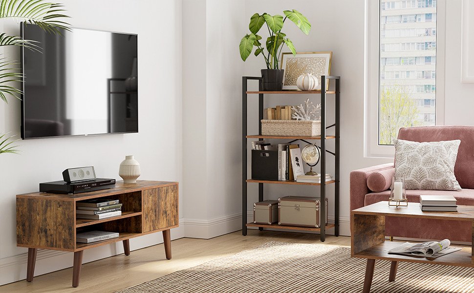 Alege o biblioteca industriala practica si eleganta pentru a-ti organiza mai bine casa sau biroul. Modelul VASAGLE cu 4 rafturi imbina aspectul cald al finisajului maro rustic cu rezistenta unui cadru din otel, oferind un plus de stil si functionalitate. Este potrivita pentru depozitarea cartilor, decoratiunilor, plantelor sau accesoriilor de zi cu zi, in living, dormitor, hol sau birou.