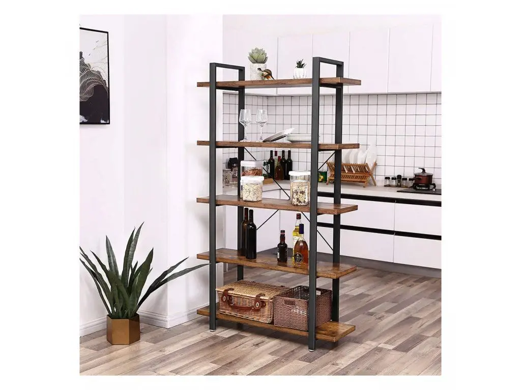 Alege o biblioteca cu 5 rafturi care imbina perfect functionalitatea cu aspectul decorativ. Modelul Vasagle are un design industrial elegant, cu polite din PAL maro rustic si cadru solid din otel negru, fiind potrivit pentru living, birou, dormitor sau chiar bucatarie. Datorita formatului inalt, aceasta biblioteca metal si PAL te ajuta sa organizezi eficient carti, plante, decoratiuni, cutii sau accesorii de uz zilnic.