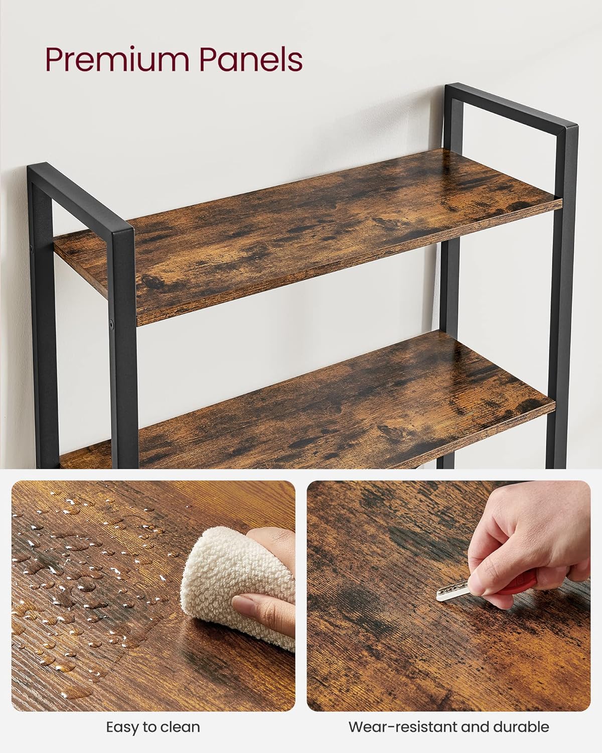 Construită pentru utilizare stabilă și sigură, această bibliotecă din lemn și oțel este prevăzută cu bare de întărire în X, picioare reglabile pentru podele ușor denivelate și kit anti-răsturnare. Fiecare nivel suportă până la 10 kg, astfel încât te poți bucura de depozitare eficientă fără compromisuri. În plus, montajul este simplificat datorită pieselor numerotate și instrucțiunilor clare.