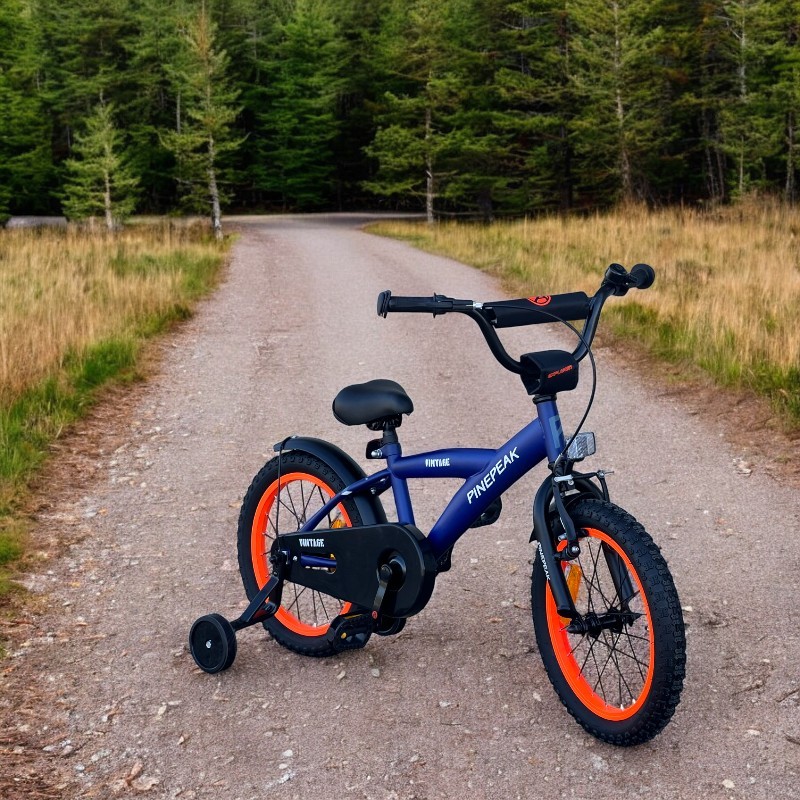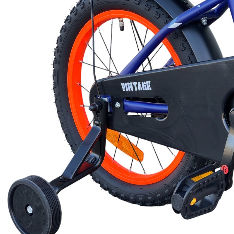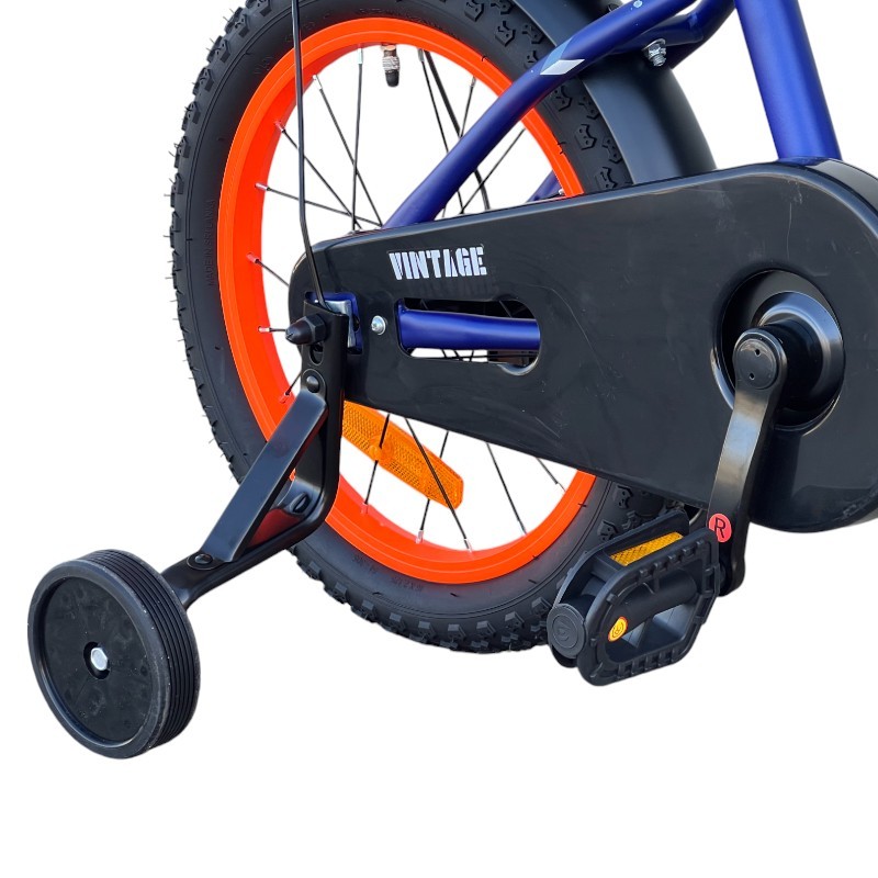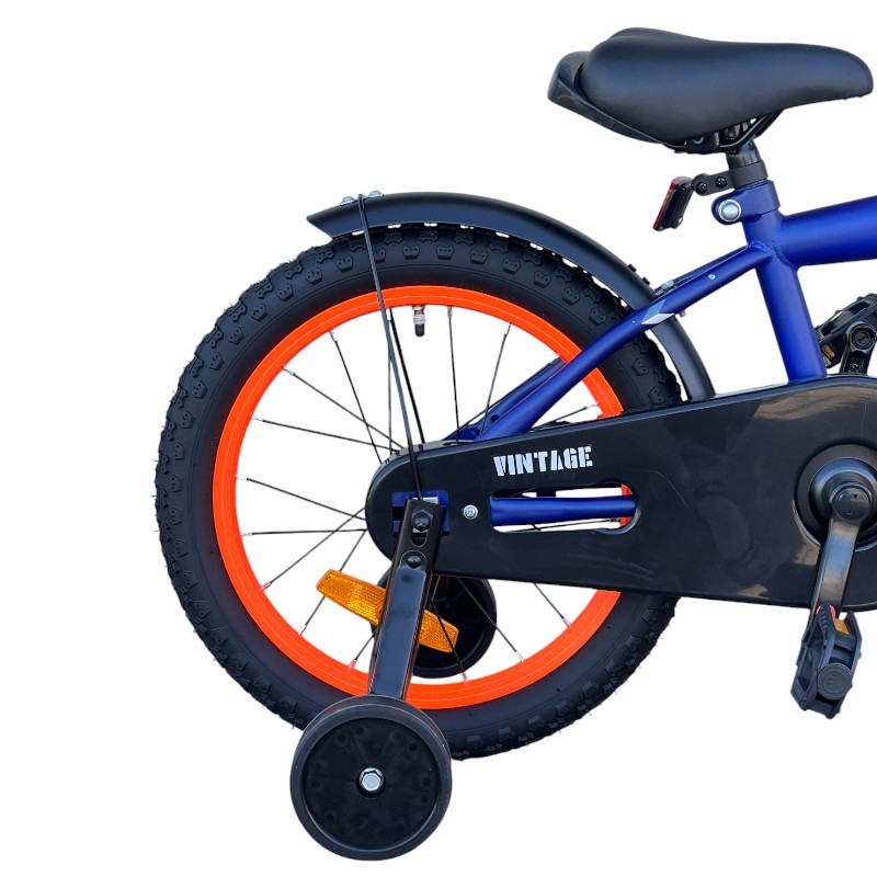 Bicicleta 16 inch, roti ajutatoare, cadru otel 23 cm, ghidon reglabil, frane fata V-Brake, albastru/portocaliu