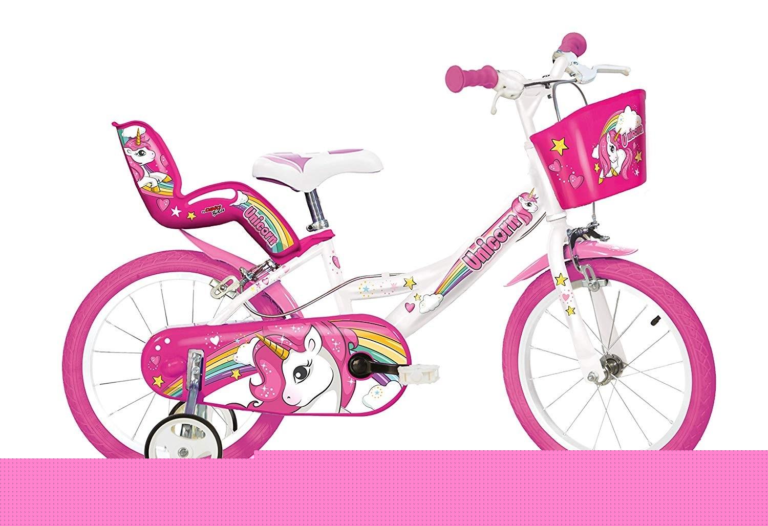 bicicleta vine echipata cu doua cosulete personalizate cu imaginea indragitului Unicorn
