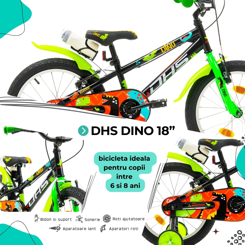 Bicicleta Copii DHS Dino este partenerul ideal pentru aventurile zilnice ale celor mici. Cu un design robust, componente de calitate si toate accesoriile necesare incluse, aceasta bicicleta ofera siguranta si bucurie la fiecare plimbare. Alege DHS Dino pentru a-i oferi copilului tau un start de incredere in lumea ciclismului!