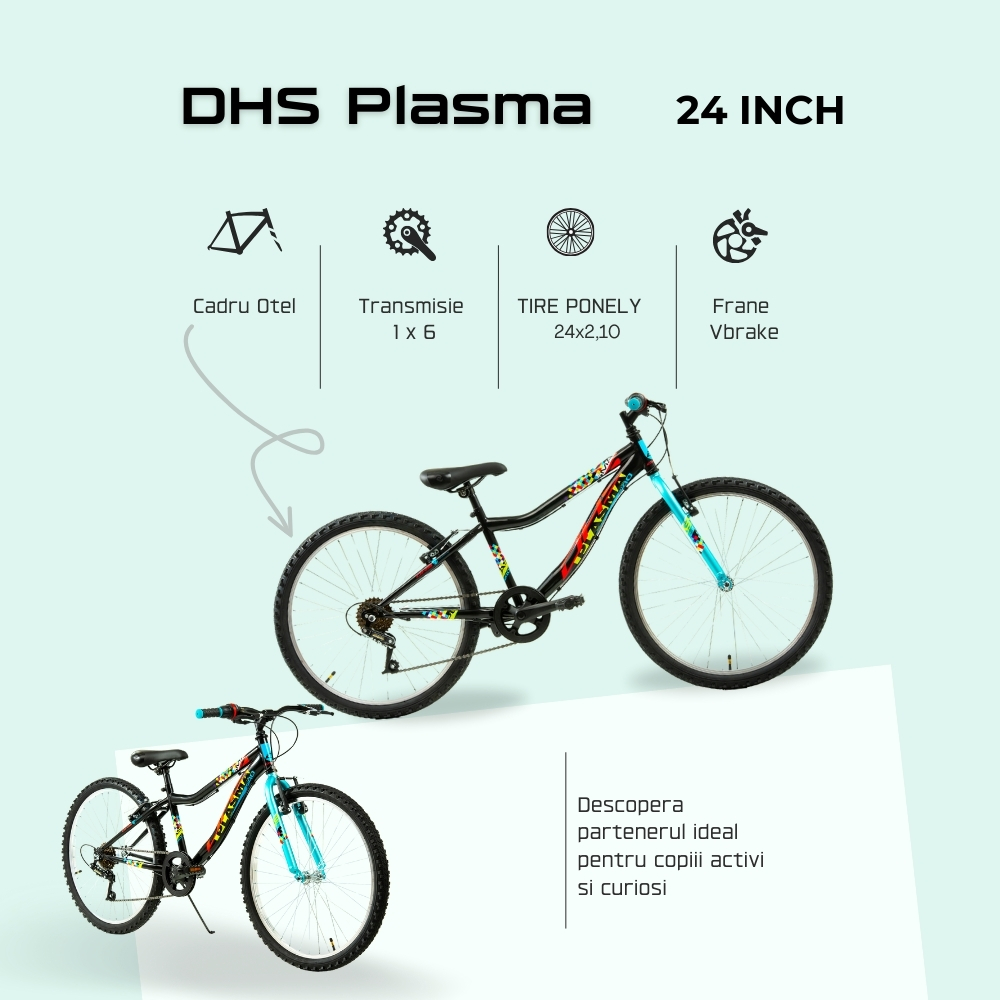 DHS Plasma 24 inch este bicicleta perfecta pentru copiii activi care isi doresc libertate si aventura in fiecare zi. Cu un design robust si componente de calitate, acest model ofera siguranta, confort si performanta, fiind potrivit pentru baieti si fete cu varsta intre 10 si 12 ani.