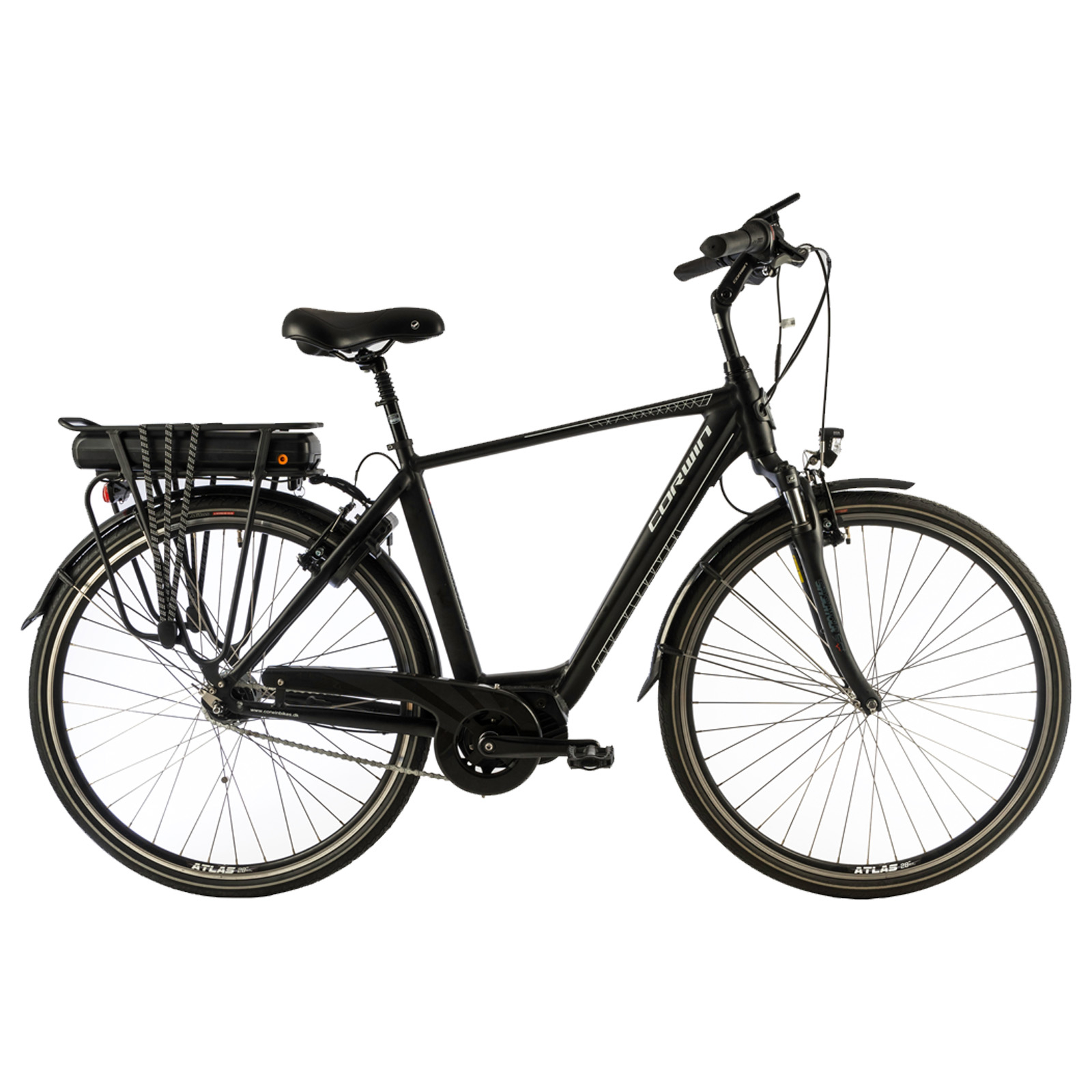 Bicicleta Electrica Corwin 28329 - 28 Inch, este o bicicleta de oras electrica cu un cadru bine lucrat din aluminiu, o greutate totala de cca 25 kg, roti de 28 inch, o echipare foarte buna, suspensie fata, 1x7 viteze, frane mecanice pe janta, iar bateria este extrem de usoara Lithium-Ion 36V, autonomie 60 km, viteza 25km/h.