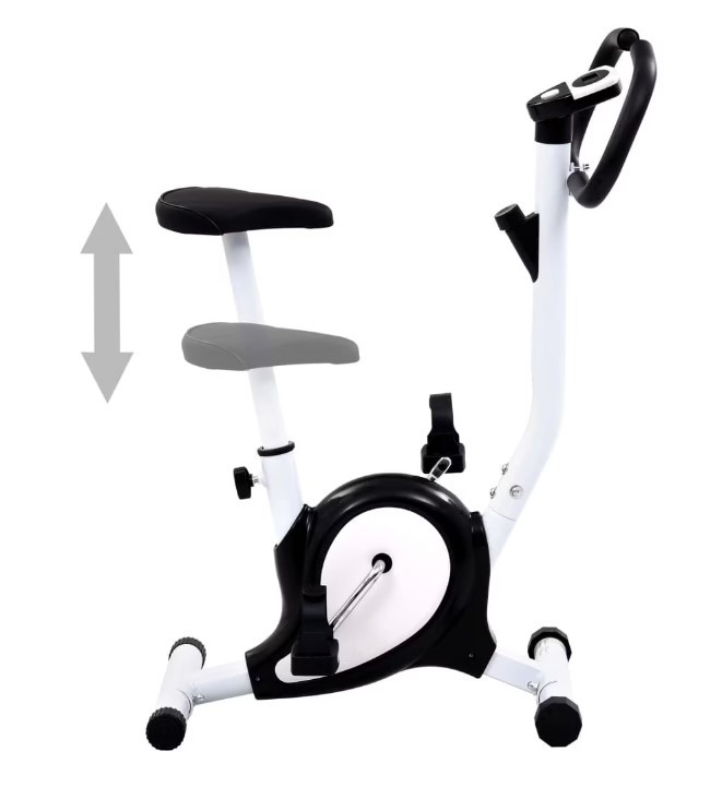 Bicicleta de fitness este un echipament ideal pentru antrenamentele acasa, oferind o solutie eficienta pentru mentinerea formei fizice si arderea caloriilor. Dotata cu un scaun reglabil pe inaltime, aceasta permite utilizatorului sa isi adapteze pozitia pentru un confort optim si o postura corecta in timpul exercitiilor, fiind potrivita pentru persoane de diverse inaltimi. Scaunul este confectionat din piele ecologica neagra si burete moale pentru un confort sporit.