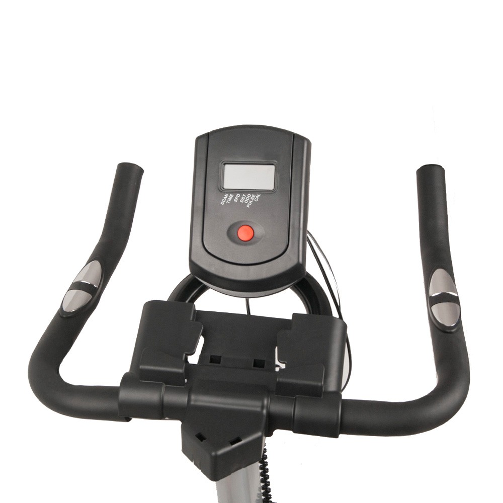 Intensitatea la pedalare este reglabila cu ajutorul unei rotite, astfel incat sa puteti seta usor nivelul de dificultate al antrenamentului. Bicicleta indoor cycling Sportmann Junno este dotata cu un calculator cu diverse functii cum ar fi scan, timp, distanta, viteza, kilometraj,puls, calorii, pentru a va monitoriza atent toate sesiunile de exercitiu. Suportul pentru bidonul de apa si bidonul inclus sunt situate la indemana astfel ca va puteti hidrata oricand, nu trebuie sa opriti antrenamentul, ci doar sa intindeti mana si sa il luati.