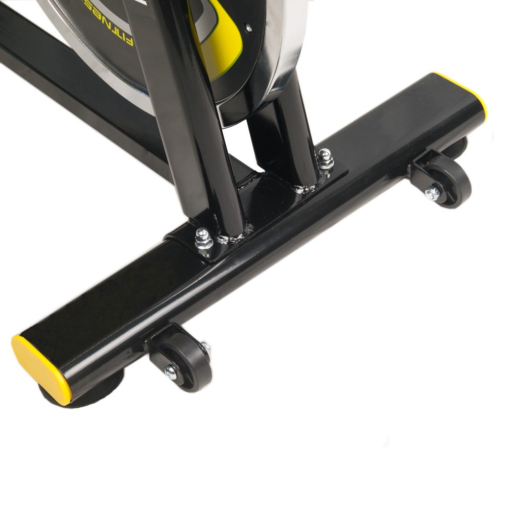 Bicicleta indoor cycling Sportmann Kalgary este prevazuta cu roti de transport, care ajuta la manevrarea usoara a produsului in locuinta, iar pedalele aderente cu cureluse mentin fixe talpile picioarelor pe pedale in timpul exercitiului, pentru siguranta optima.