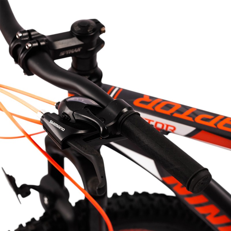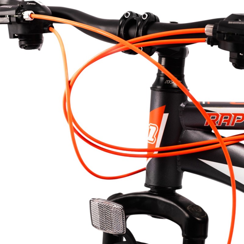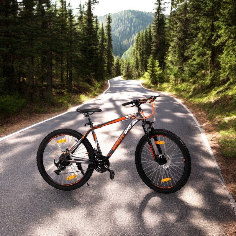 Aceasta bicicleta MTB (Mountain Bike) este conceputa pentru cei care isi doresc sa exploreze trasee montane, drumuri accidentate sau chiar plimbari in oras, combinand performanta cu confortul. Designul sau modern in culorile negru si portocaliu aduce un aspect sportiv si dinamic, iar componentele de calitate garanteaza o experienta sigura si placuta.