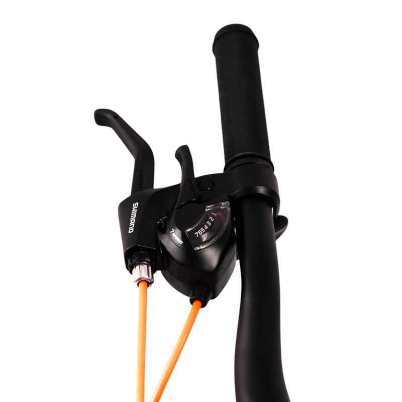 Bicicleta este echipata cu un schimbator Shimano de inalta calitate, care permite selectarea usoara a celor 21 de viteze, pentru a face fata diferitelor tipuri de trasee, fie urcusuri abrupte, fie drumuri drepte.