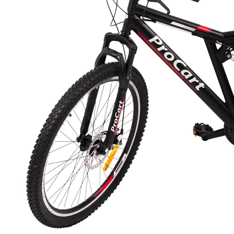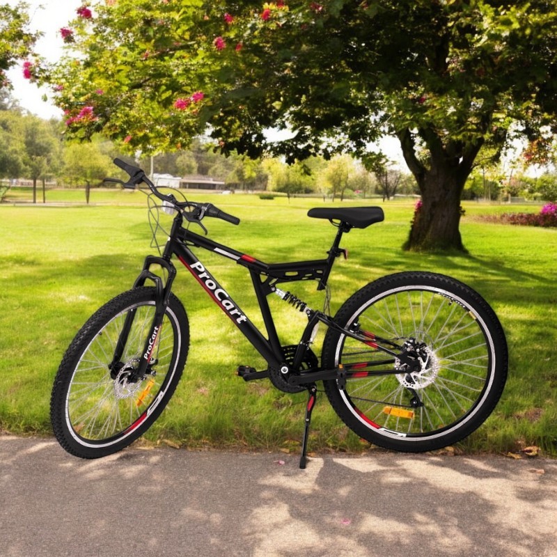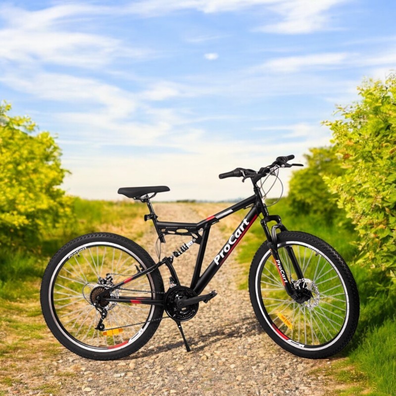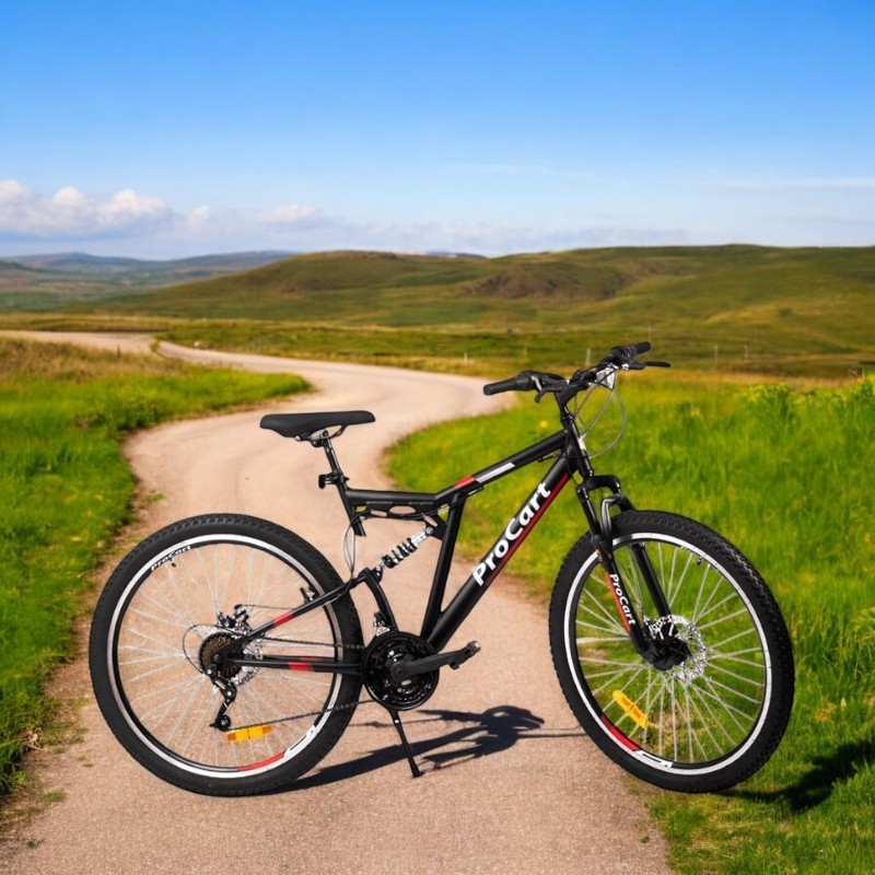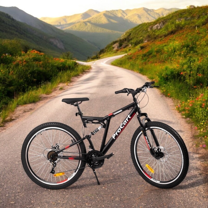 Pregătește-te de trasee variate cu bicicleta MTB 26 inch Procart, concepută pentru plimbări pe poteci, drumuri forestiere și teren accidentat. Combinația dintre full suspension (față-spate), cele 21 viteze și frânele pe disc îți oferă confort, control și siguranță la fiecare ieșire.