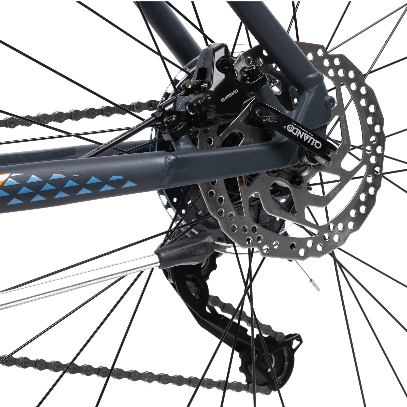 - Cu frane hidraulice pe disc Shimano, aceasta bicicleta asigura durabilitate si control excelent.