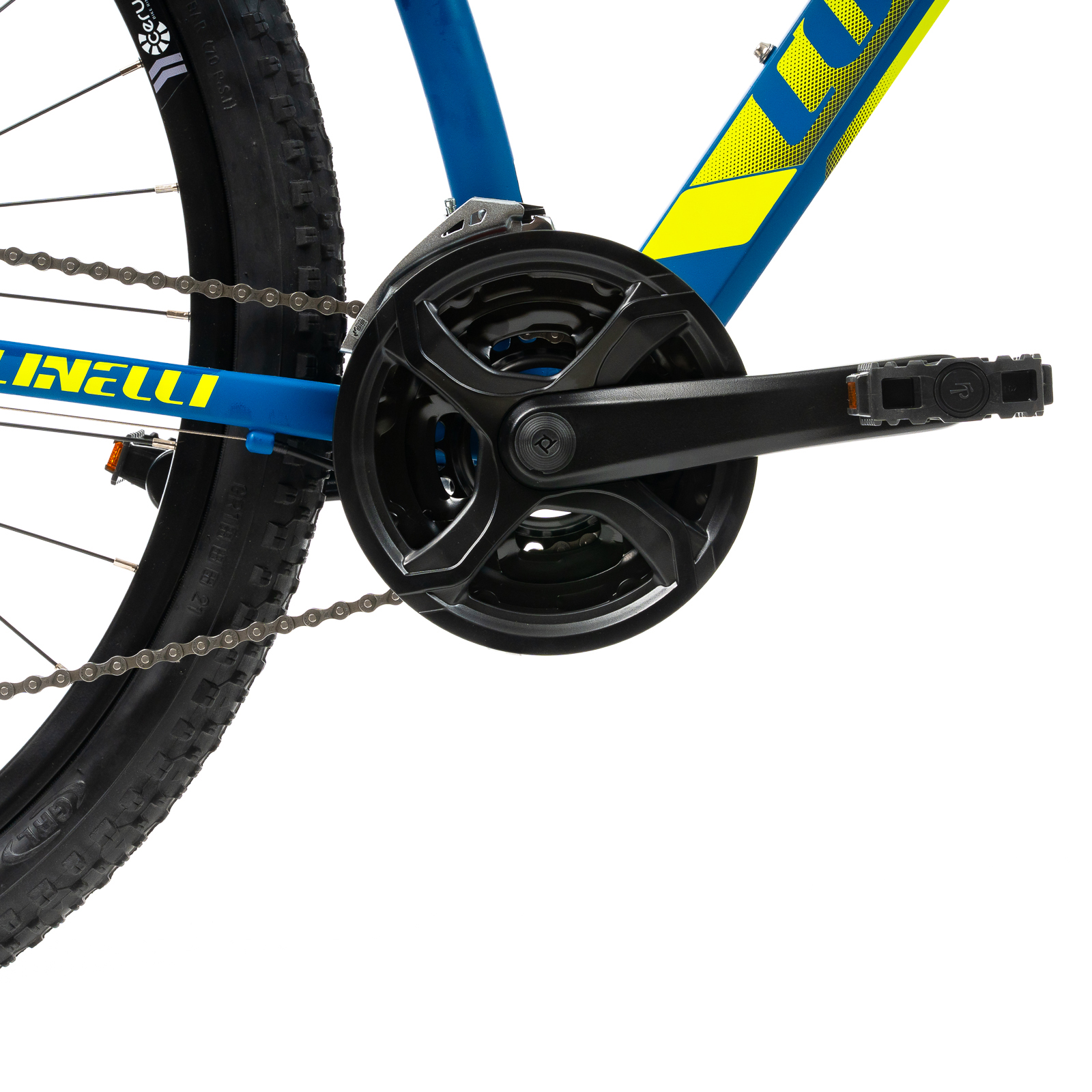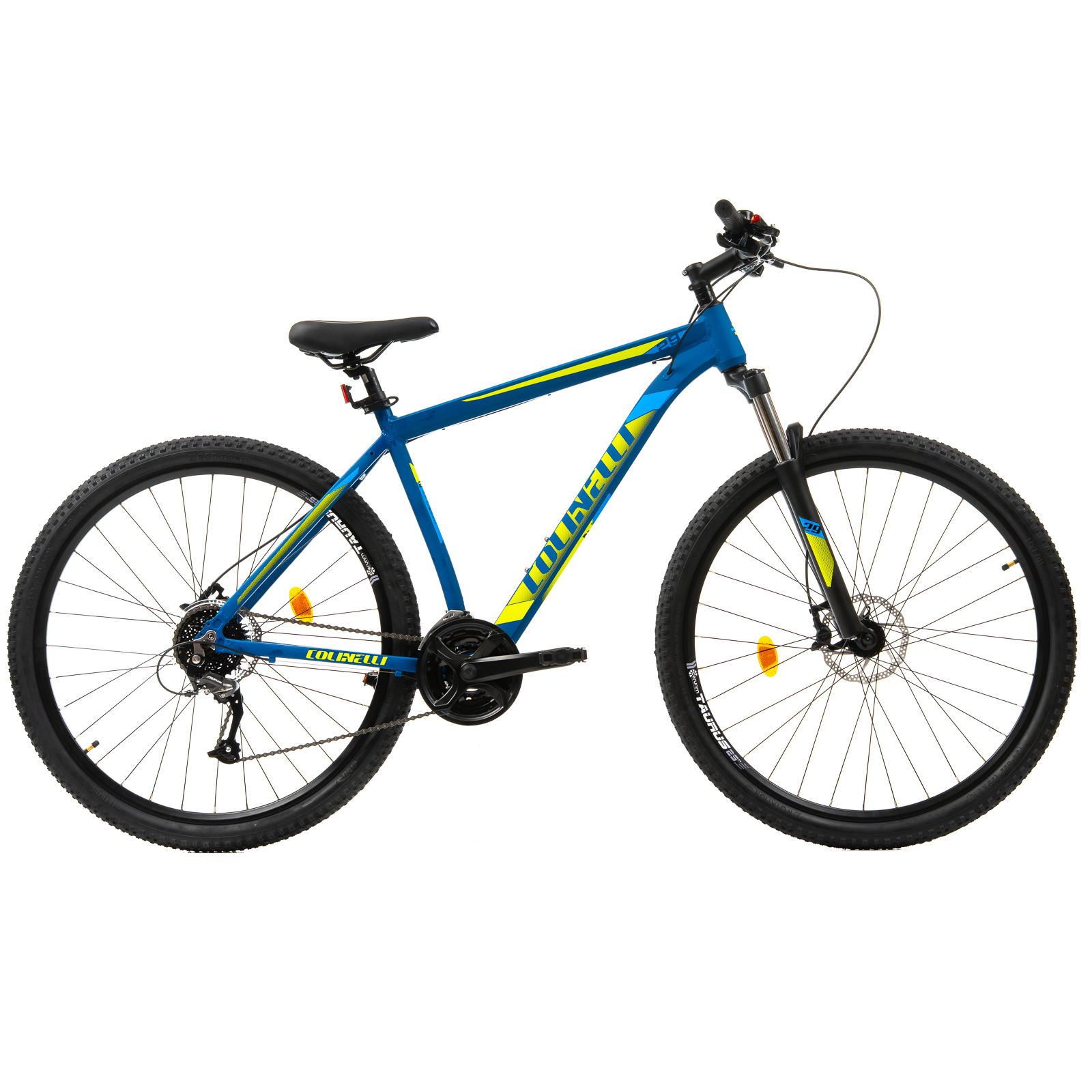 MTB Colinelli 2927 este un hardtail cu un cadru de aluminiu, echipata Shimano, suspensie fata, frana pe disc hidraulica, 3x8 viteze,
