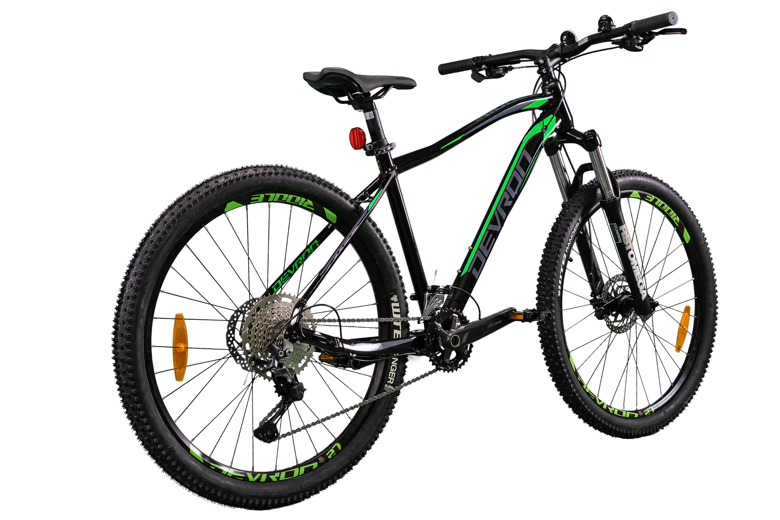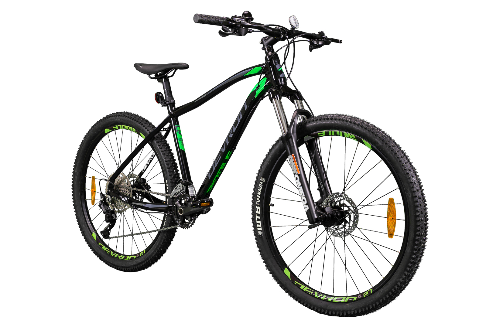 Devron Riddle M3.7 este un MTB cu echipare Shimano, suspensie fata, frana pe disc hidraulica, 2x10 Viteze, roti de 27.5 inch echipate WTB Comp.
