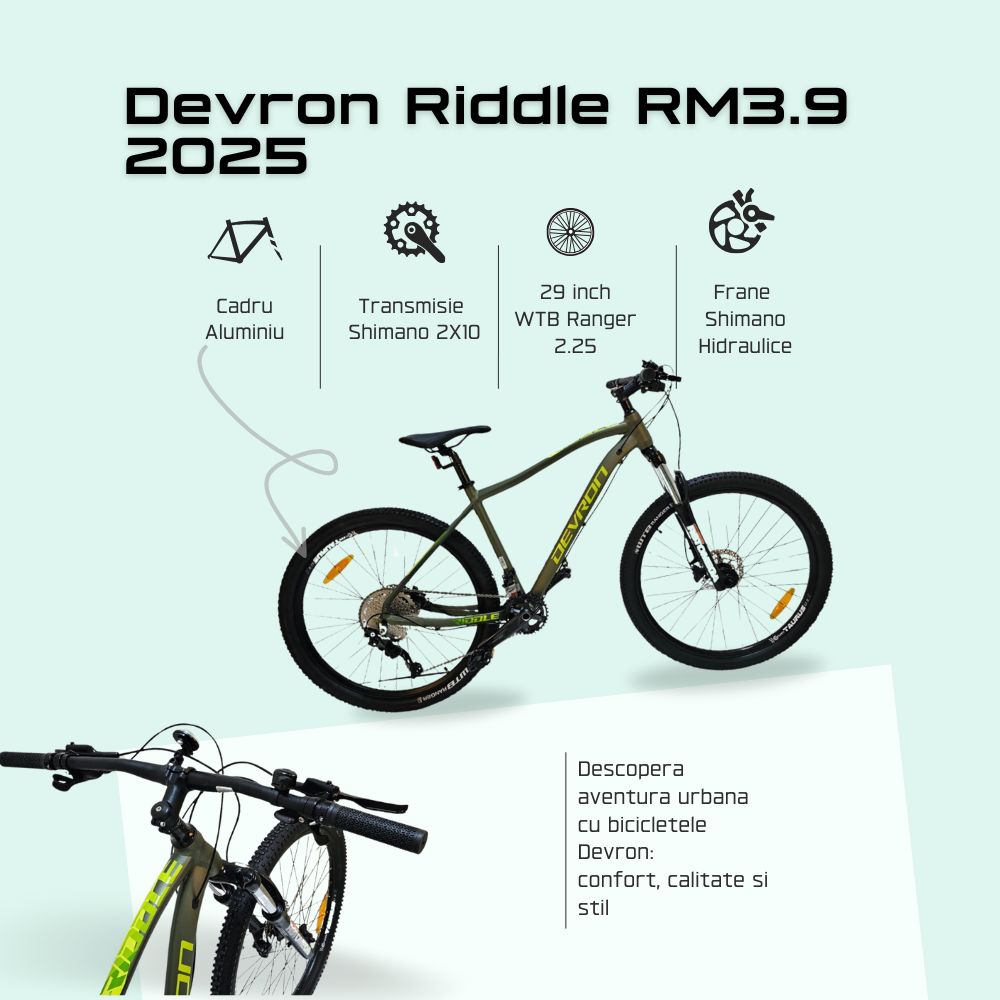 Bicicleta MTB Devron Riddle RM3.9 este alegerea perfecta pentru cei care cauta performanta, confort si siguranta. Cu specificatii de top si un design modern, aceasta bicicleta garanteaza o experienta de pedalat memorabila pe orice traseu. Alege Devron Riddle RM3.9 pentru aventuri unice si trasee spectaculoase!