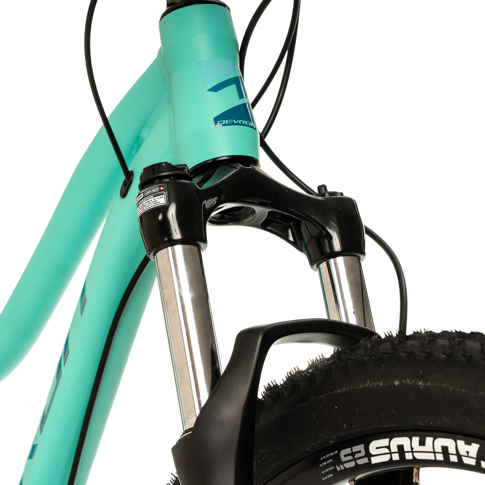Devron Riddle RW1.9 2025 este bicicleta MTB dedicata femeilor care doresc sa cucereasca trasee off-road, poteci forestiere si drumuri montane. Cu un cadru usor din aluminiu si roti de 29 inch, acest model ofera stabilitate, confort si eficienta la fiecare pedalare. Furca RST Blaze cu cursa de 100 mm si franele hidraulice Shimano MT200 sunt aliatii perfecti pentru siguranta si control pe orice teren accidentat.