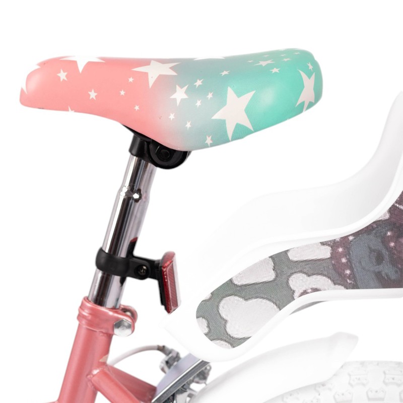 De asemenea, acest model de bicicleta include un scaun special pentru papusi, amplasat in spatele scaunului, oferindu-i copilului posibilitatea de a transporta jucariile preferate. Acest detaliu adauga o nota distractiva fiecarei plimbari.
