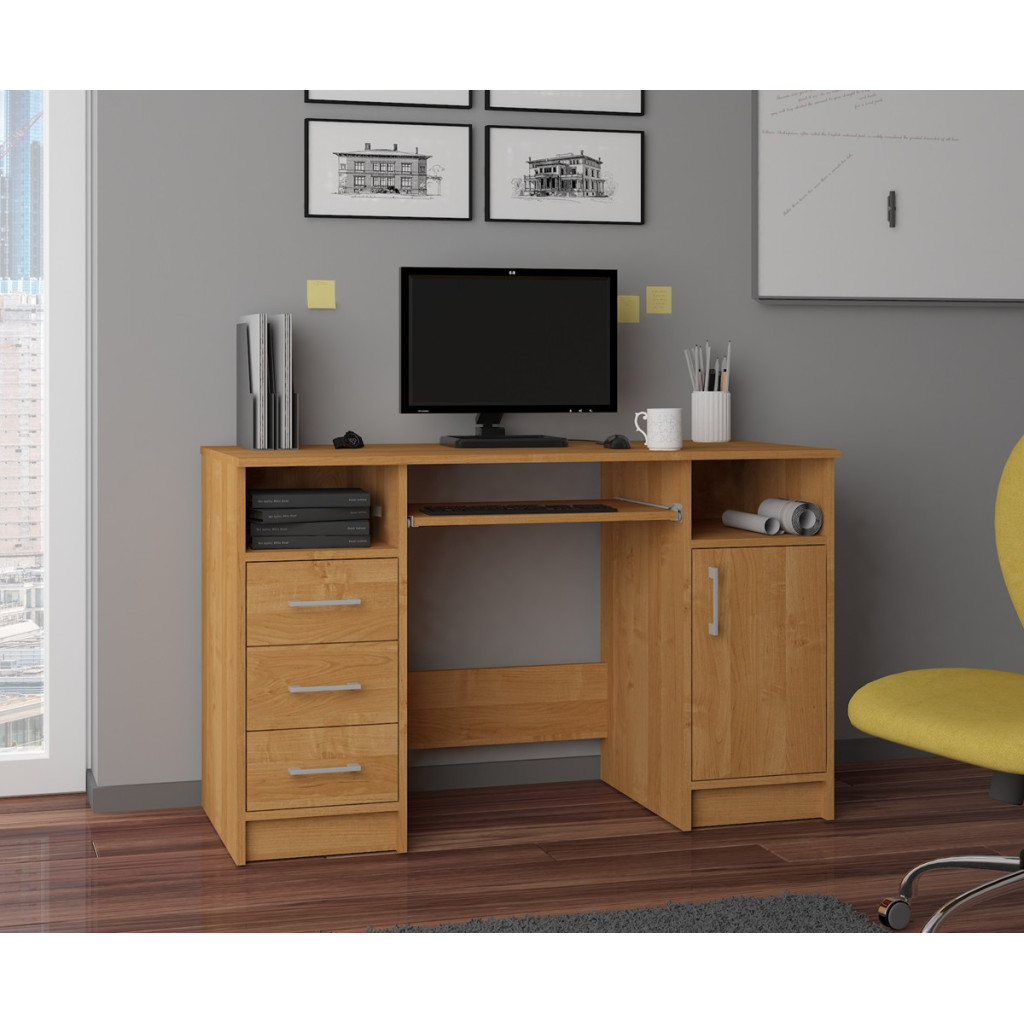 Birou ANA pentru calculator, cu 3 sertare si 1 usa, 124x52x74 cm, maro arin Household NewTrend