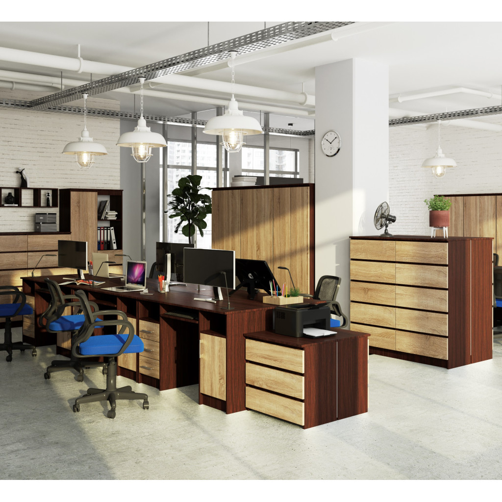 Birou ANA pentru calculator, cu 3 sertare si 1 usa, 124x52x74 cm, maro wenge si stejar sonoma Household NewTrend