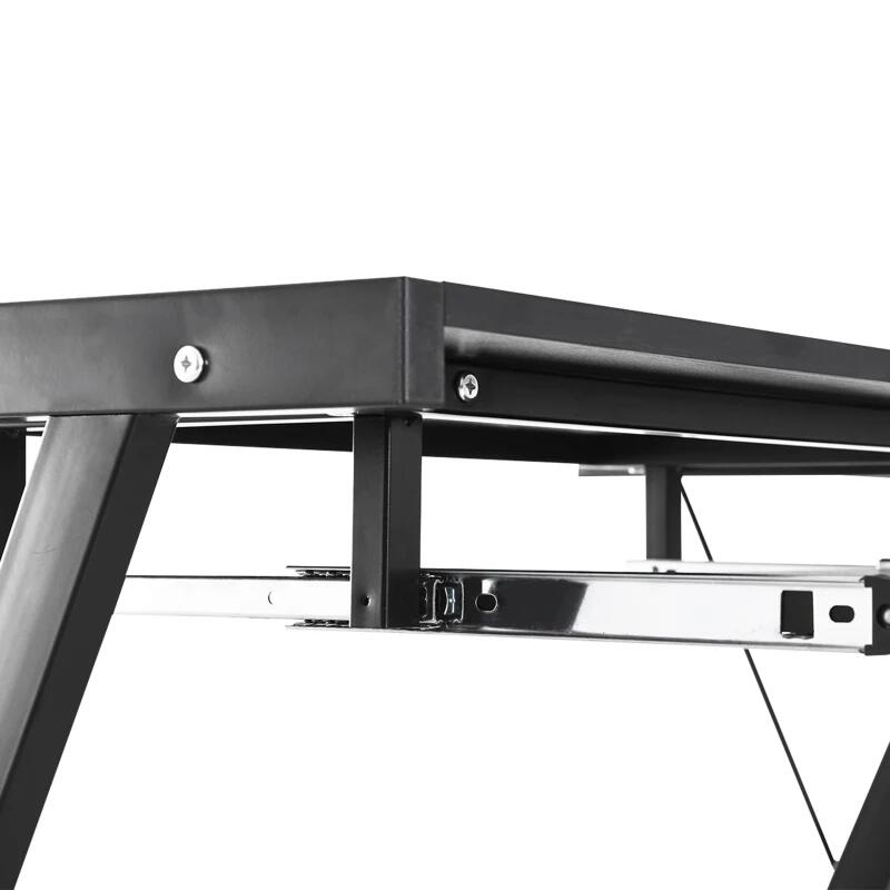 Birou calculator pe colt, convertibil, otel, MDF, cu raft tastatura, negru, max 20 kg, 130x130x73.5 cm