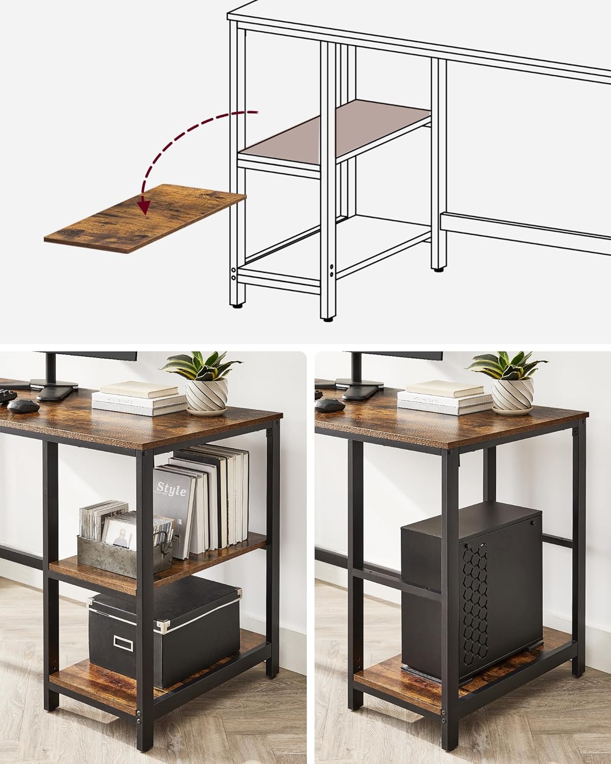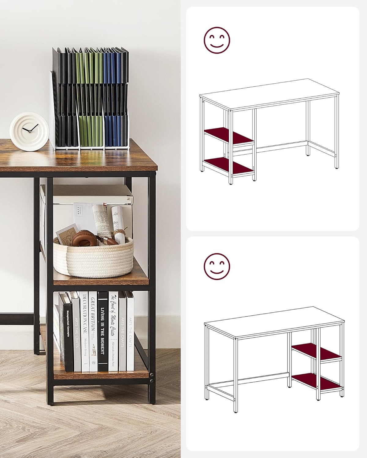Birou calculator VASAGLE cu 2 rafturi reversibile, 140 cm, maro rustic