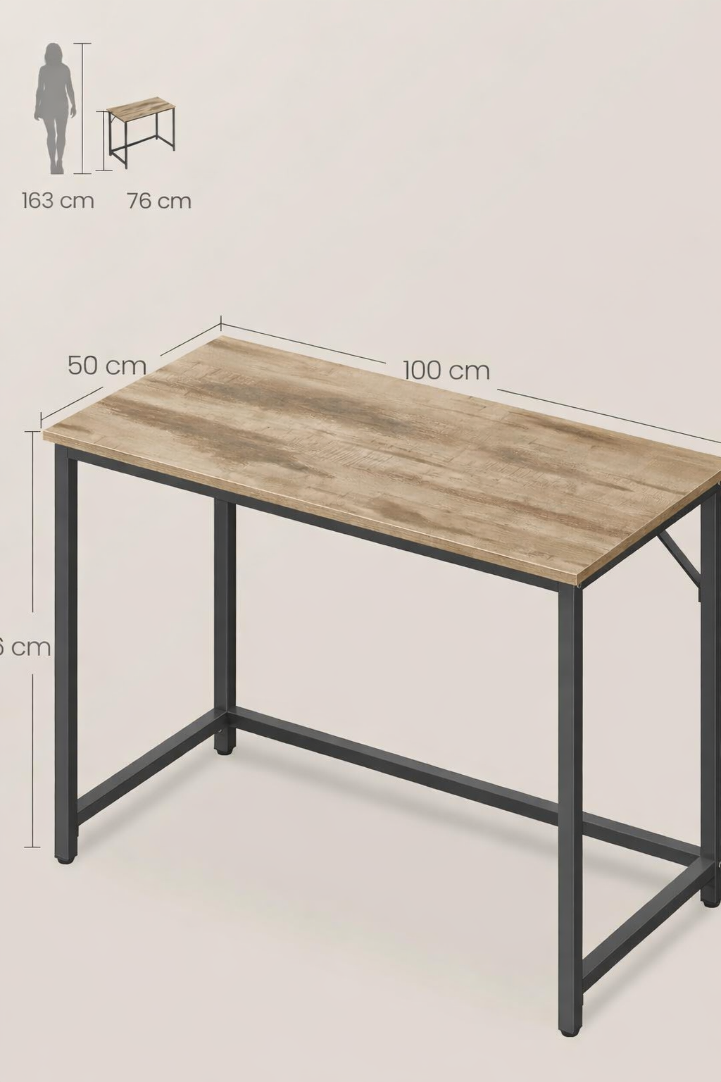 Birou calculator VASAGLE, stil industrial, blat PAL, 100x50x76 cm, maro camel