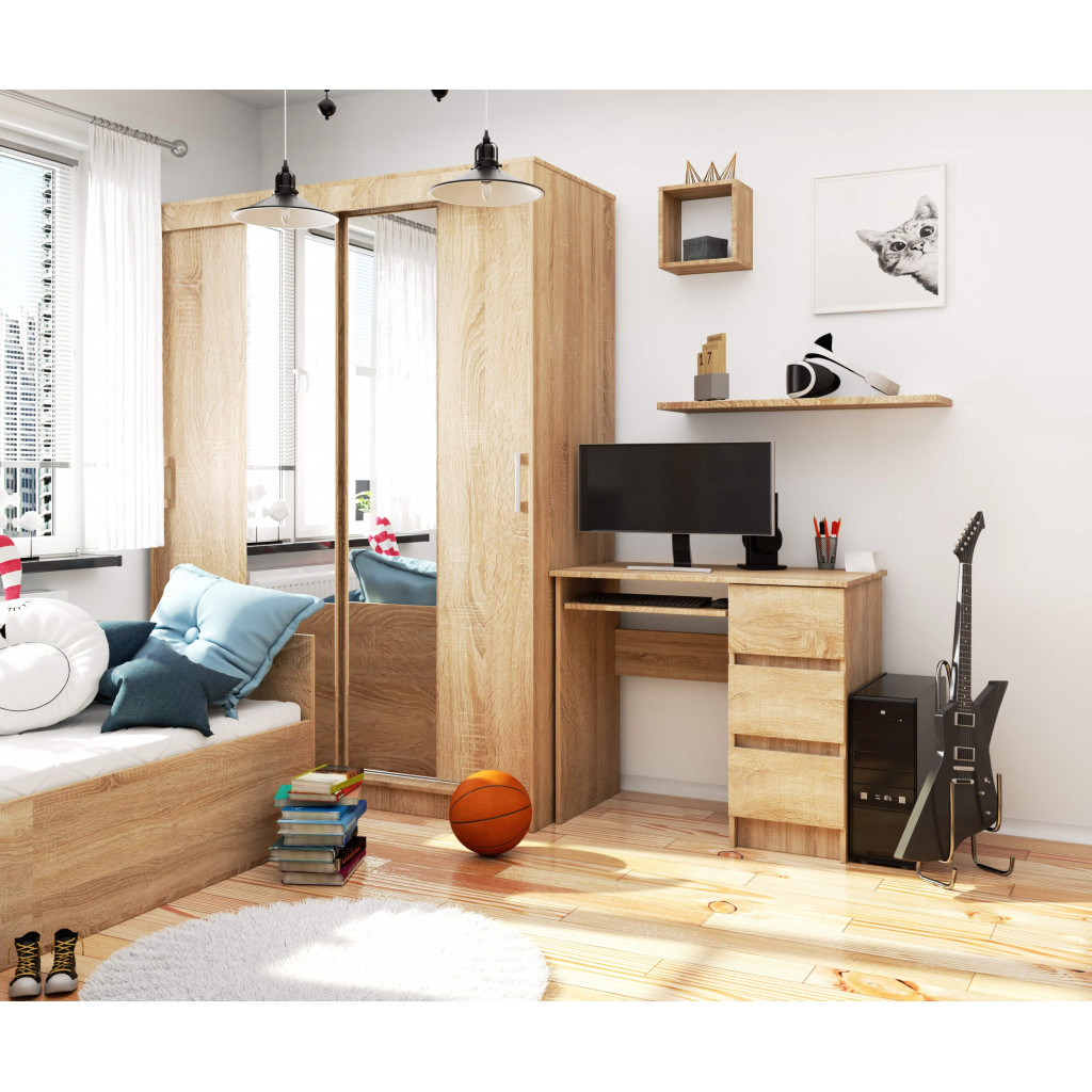 Birou computer cu 3 sertare si raft pentru tastatura, dreapta, 90x50x77 cm, stejar sonoma Household NewTrend