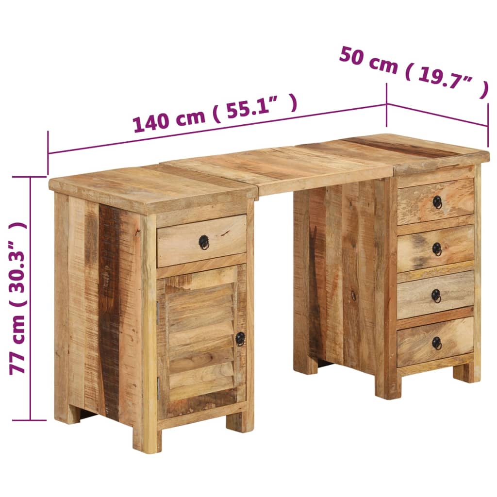 Birou cu postament, 140x50x77 cm, lemn masiv de mango GartenMobel Dekor