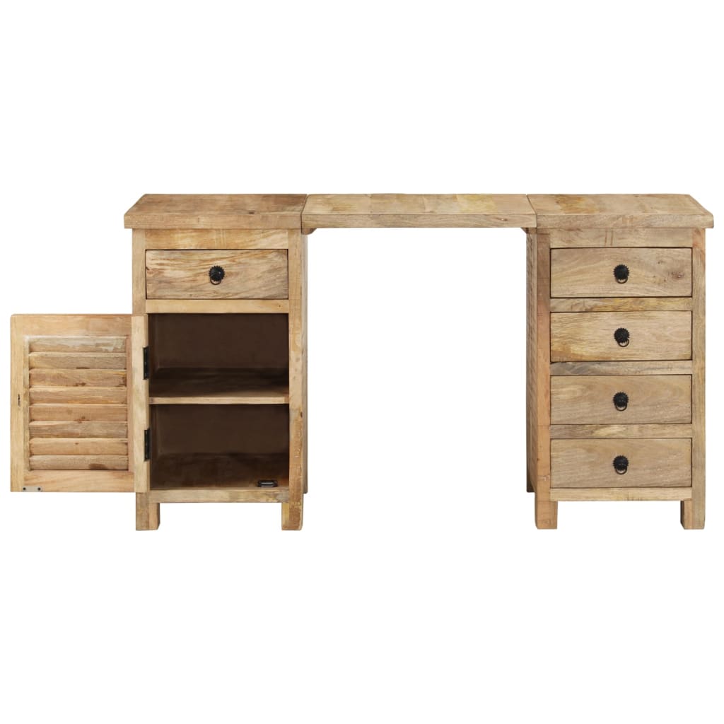 Dulapul este realizat din lemn masiv de mango, acesta fiind stabil, durabil și frumos, iar măiestria creației accentuează stilul său retro spectaculos. Lemnul masiv de mango nu numai că are forța de a susține greutatea, ci rezistă și la uzura timpului. Fiecare pas al procesului este realizat cu cea mai mare grijă, fie că este vorba de lustruire, vopsire sau lăcuire. Biroul are 5 sertare și 1 dulap, care oferă spațiu amplu pentru depozitarea obiectelor de mici dimensiuni, cum ar fi chei, carnețele și alte mărunțișuri. Designul piedestalului este atractiv și multifuncțional. De asemenea, datorită blatului detașabil, biroul este ușor de transformat în 2 dulapuri laterale separate.