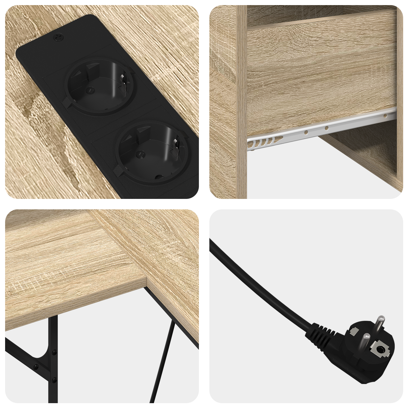 - materials: E fabricat din lemn prelucrat de super calitate, cu o suprafață netedă și rezistentă, perfectă pentru muncă sau studiu. Lemnul e tare pentru utilizare pe termen lung, iar finisajul neted dă un vibe plăcut. Are piese metalice care rezistă la uzura zilnică.