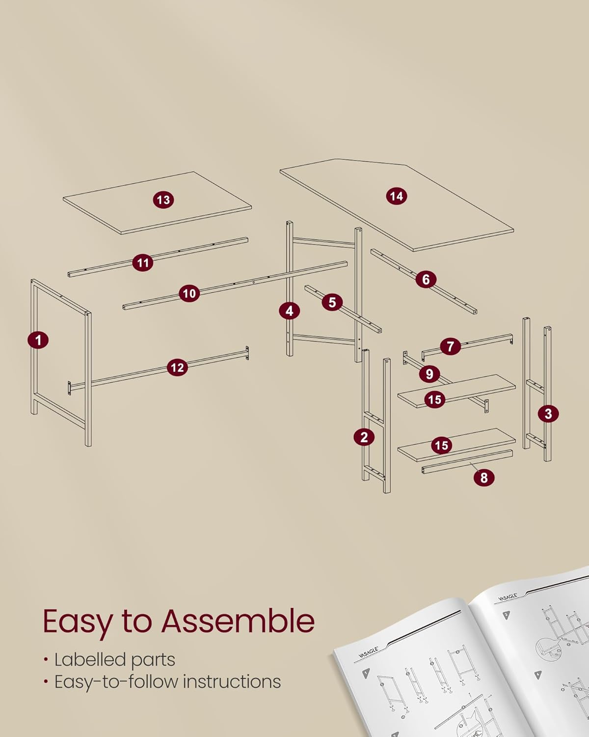 Descriere Birou colt in forma L VASAGLE