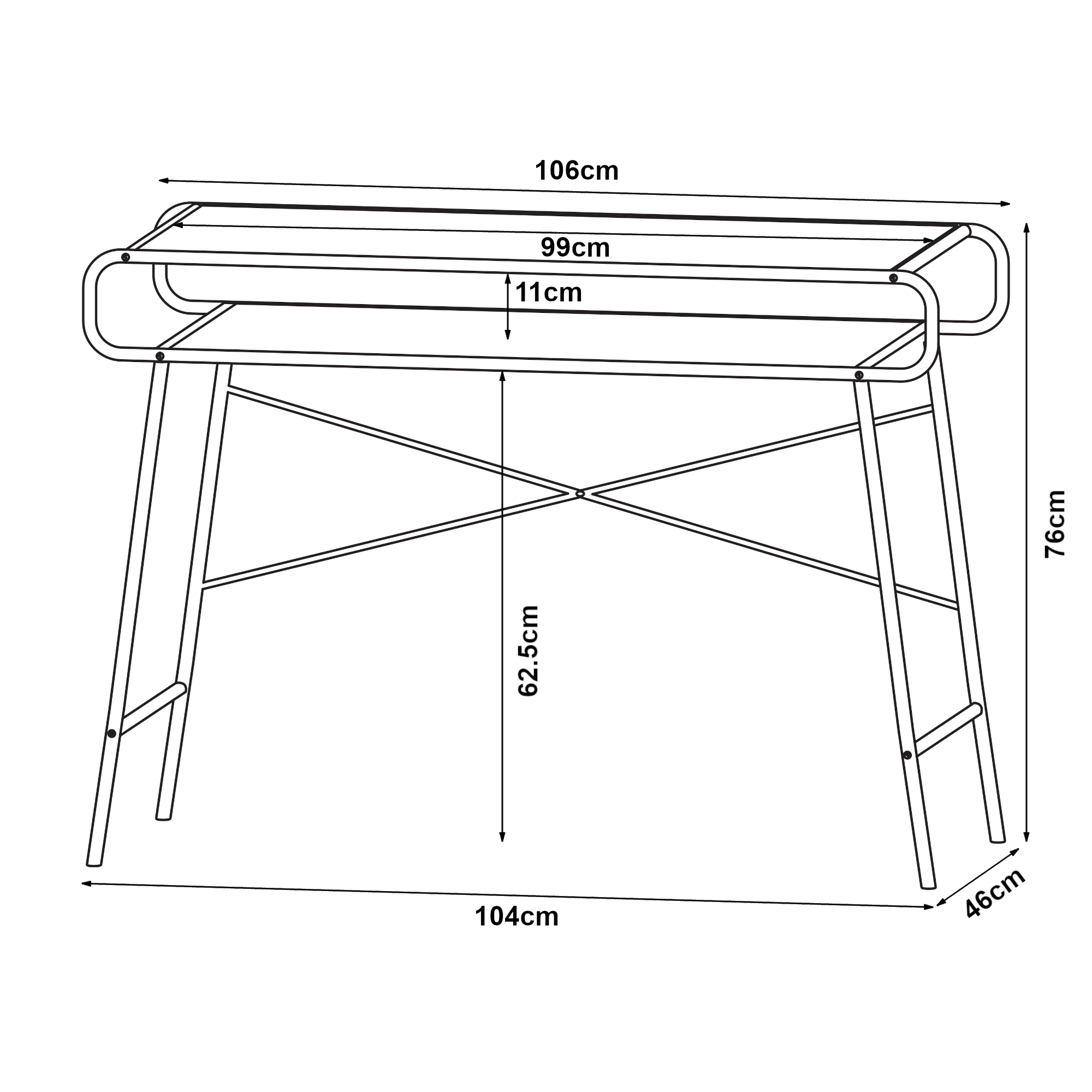- inaltime raft situat sub blatul mesei: 11 cm