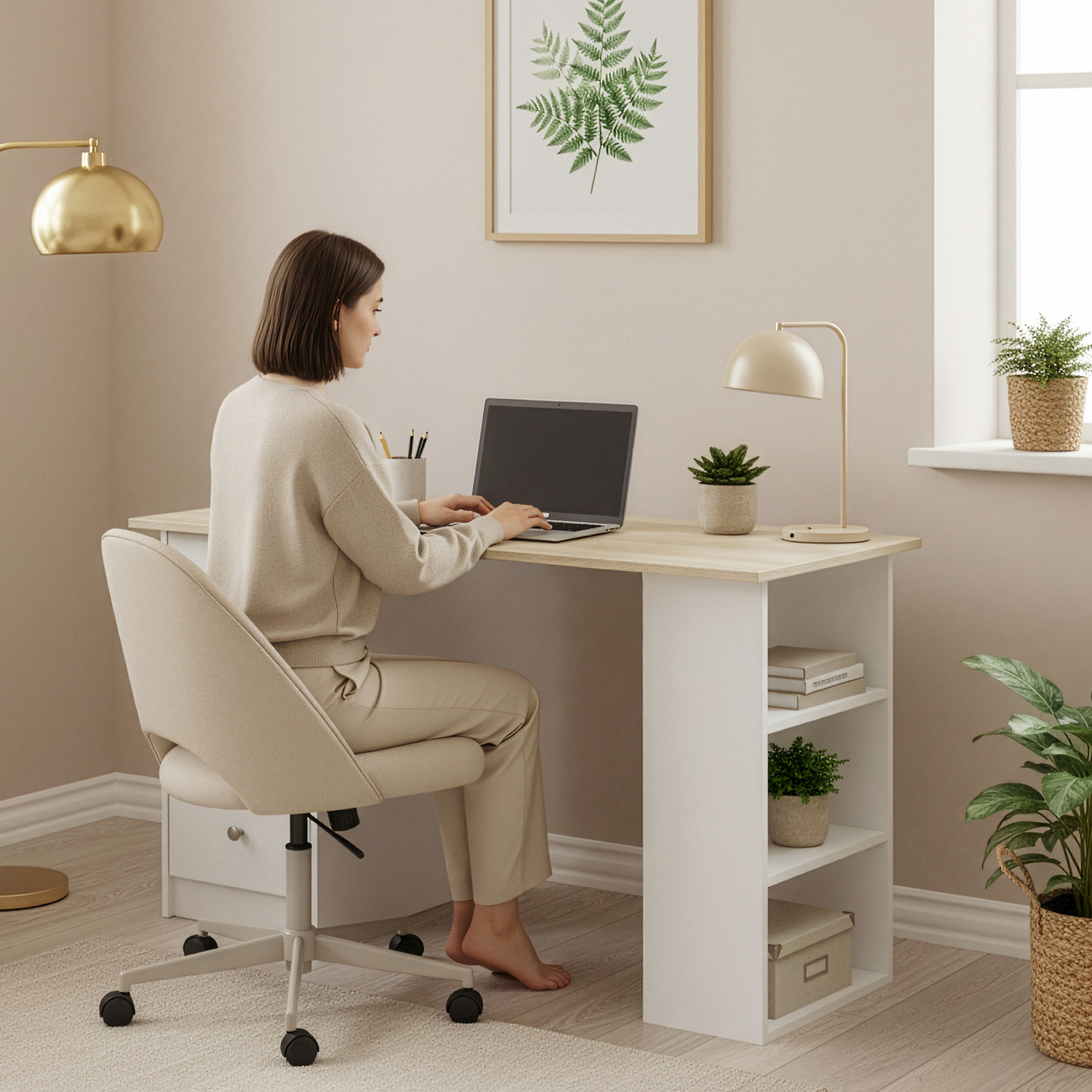 Poate fi folosit ca birou pentru acasa, birou pentru elevi sau studenti, masa de lucru pentru laptop ori spatiu de organizare in birouri compacte. Suprafata generoasa a blatului permite asezarea unui laptop, monitor, carti si accesorii decorative.