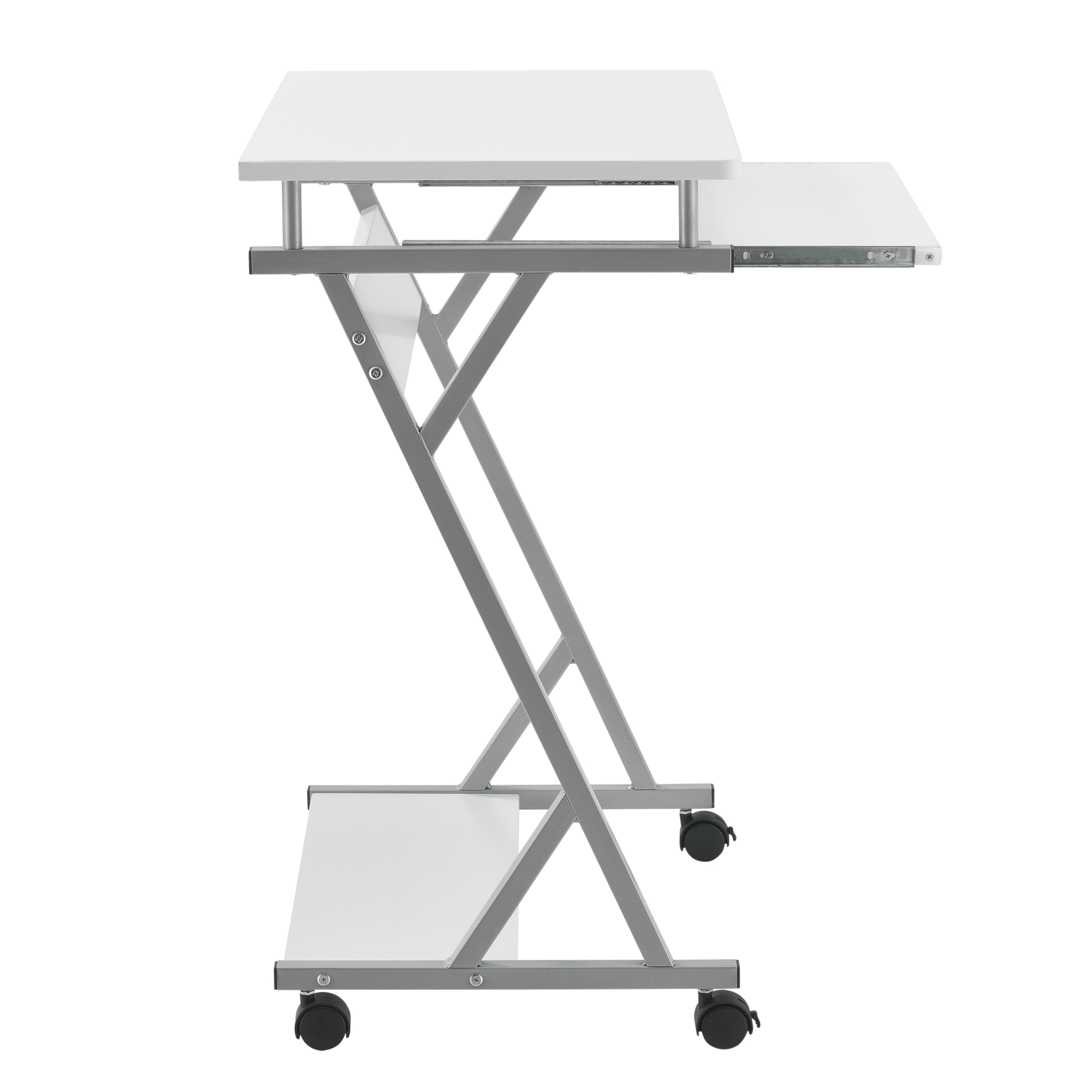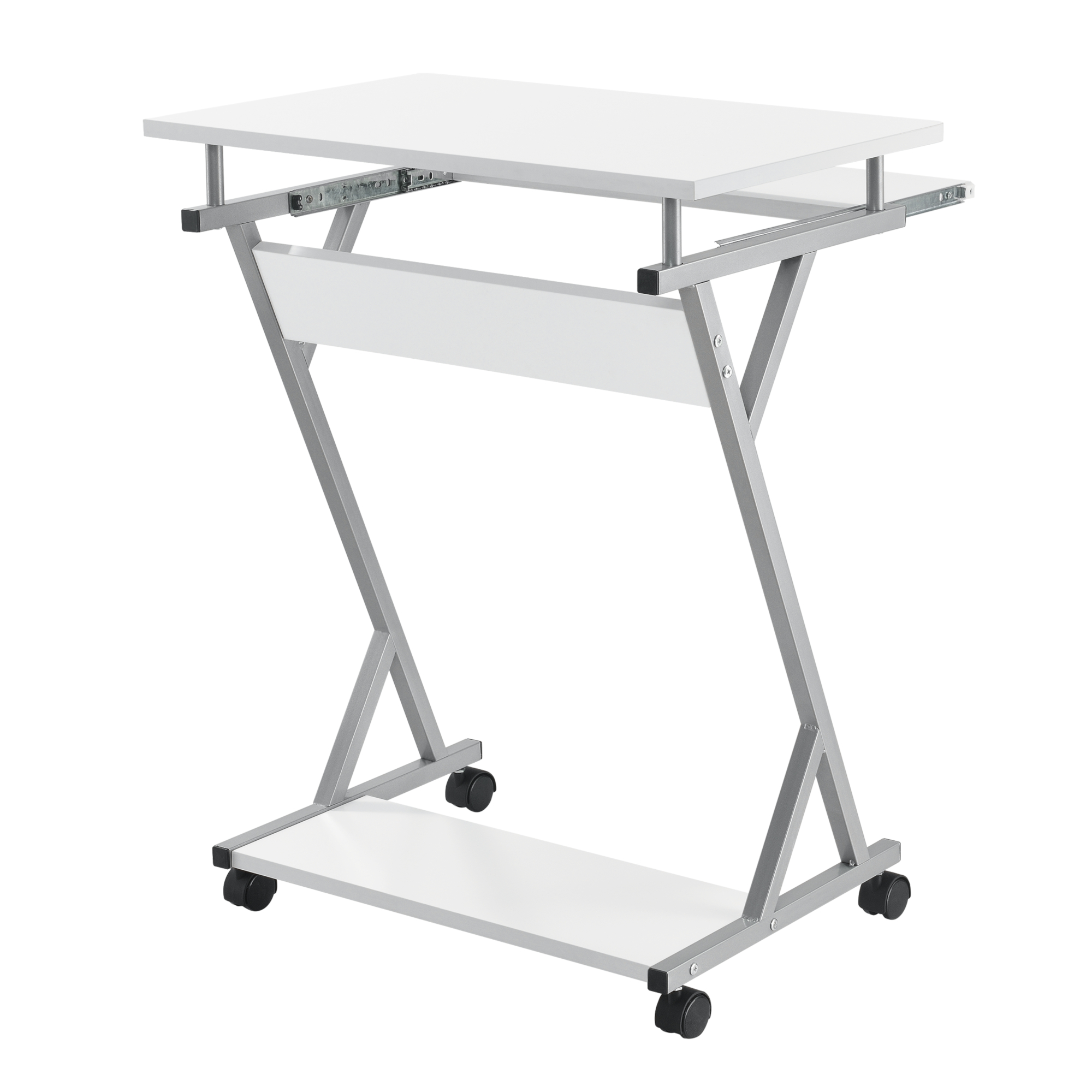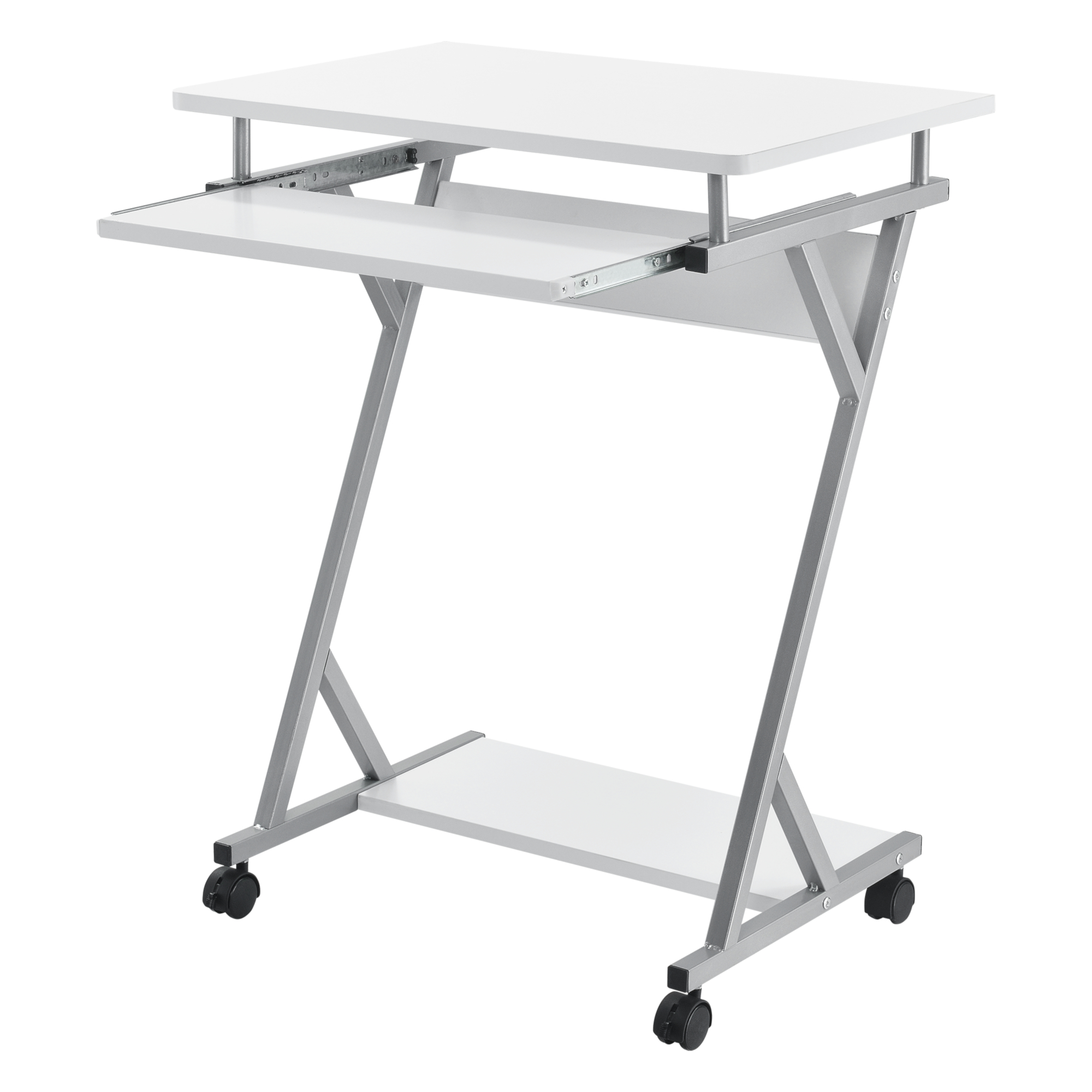 Datorită celor patru roți, dintre care două frontale sunt prevăzute cu sistem de blocare, biroul poate fi mutat simplu acolo unde ai nevoie. Polița glisantă pentru tastatură îți păstrează blatul liber, iar raftul inferior oferă loc suplimentar pentru imprimantă, documente sau accesorii. Este un birou compact, ușor de întreținut și potrivit pentru activități de lucru, studiu sau utilizarea zilnică a laptopului și PC-ului.