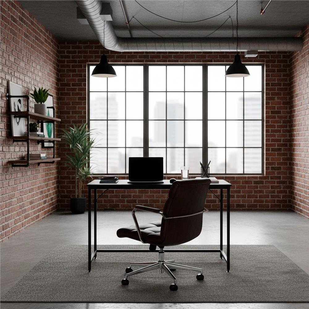 Structura este gandita pentru utilizare confortabila si durabilitate. Blatul din MDF rezistent ofera o suprafata placuta si usor de intretinut, iar cadrul din metal vopsit electrostatic asigura rezistenta in timp. Suportii metalici inclinati contribuie la rigiditate, iar picioarele reglabile ajuta la nivelarea corecta pe suprafete usor denivelate.